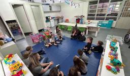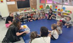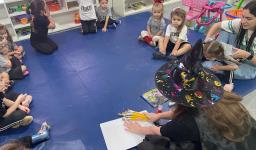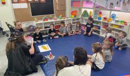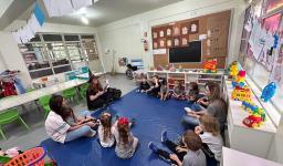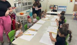 Diante disso, a turma recebeu uma visita especial da professora do Nível 3 da escola, Lúcia Persch Cardoso. Lúcia iniciou o encontro com uma roda de conversa e a contação da história Bruxa Filó.