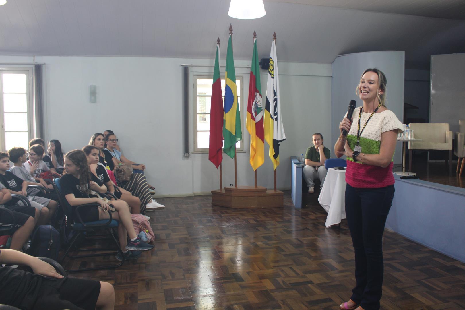 A programação começou às 13h30, com uma acolhida na sala de conferências e a apresentação da Equipe Pedagógica, seguida de uma meditação organizada pela Pastoral Escolar e uma fala do Núcleo Pedagógico. Os estudantes também participaram de dinâmicas que incentivaram conhecer uma pessoa nova, integrando as Unidades.