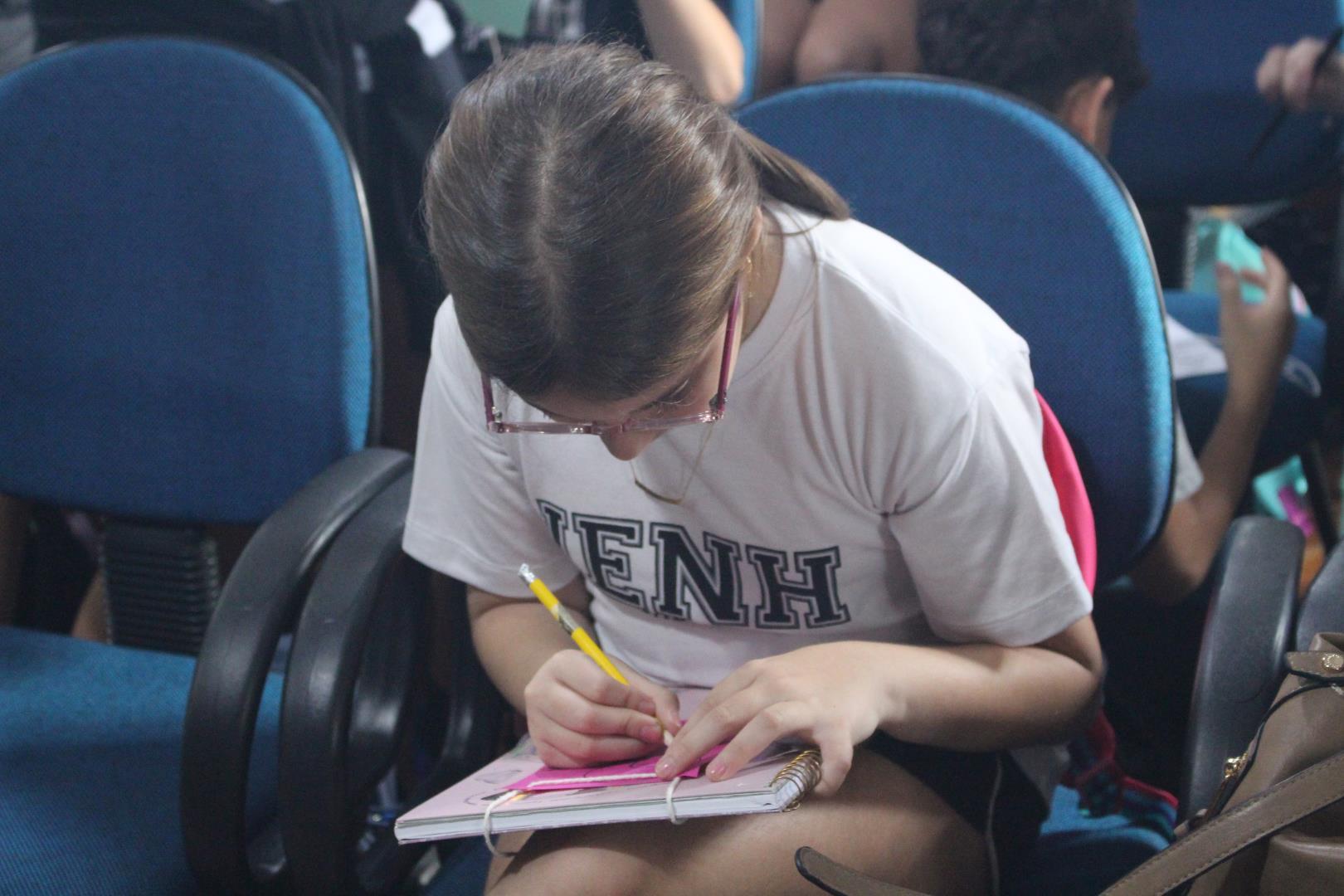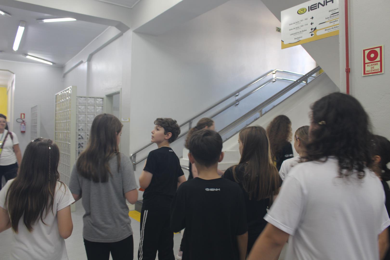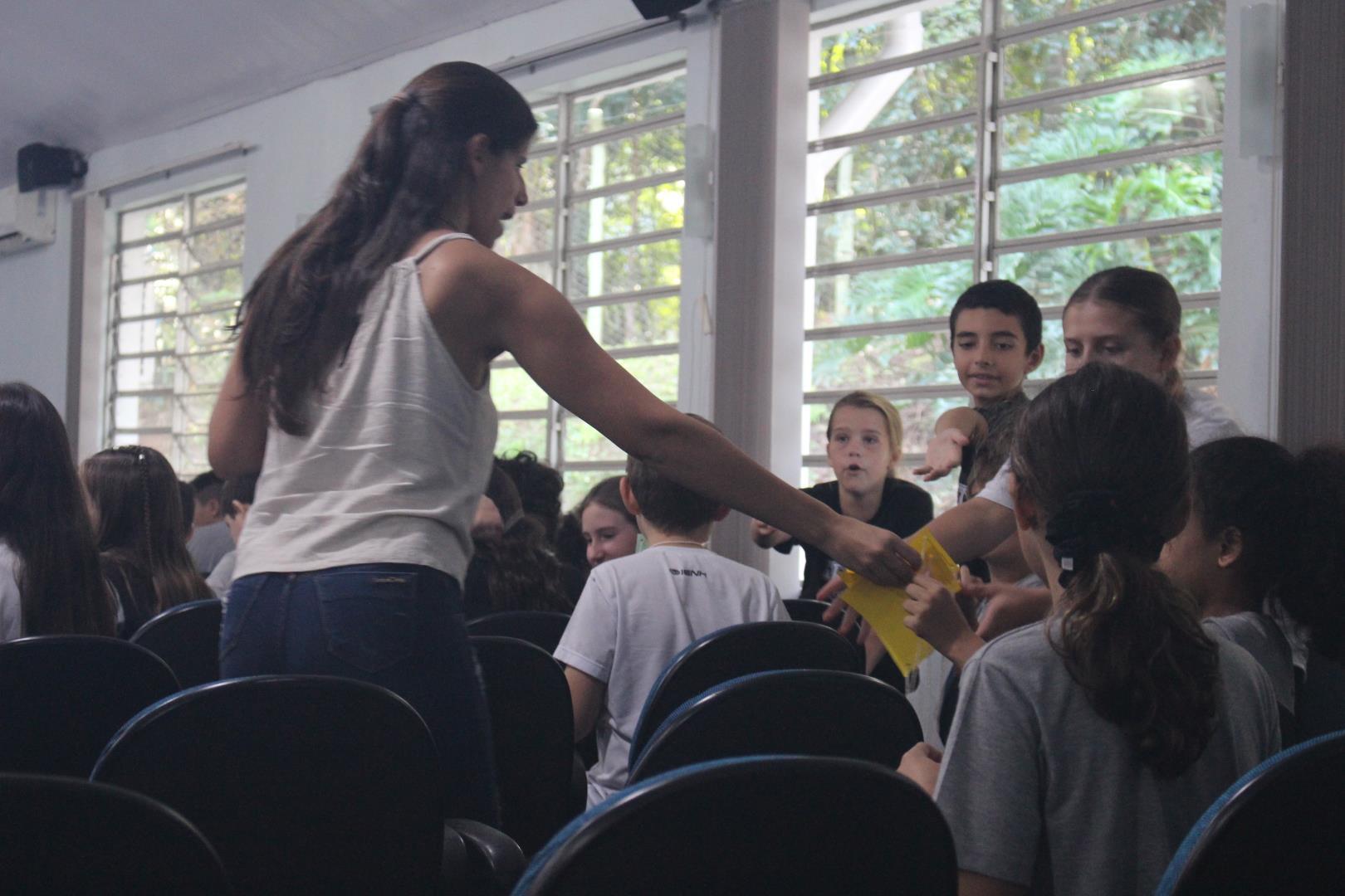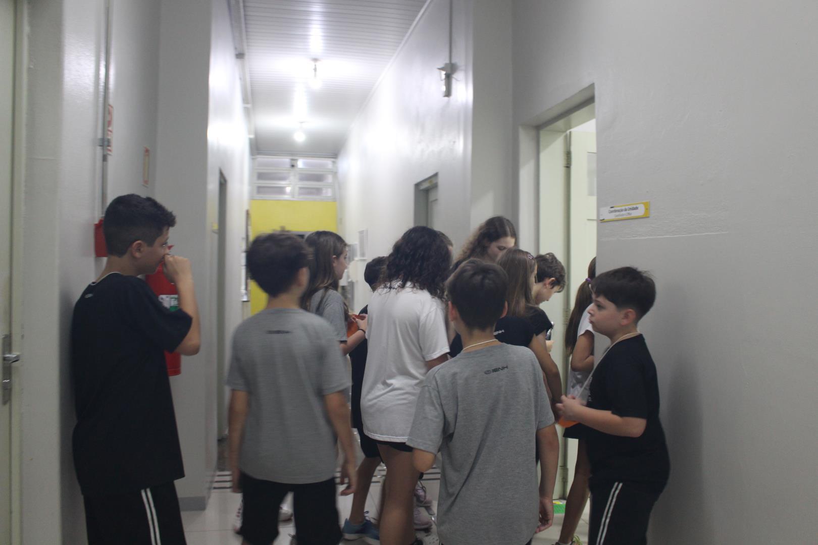 Os estudantes tiveram um momento de intervalo e, em seguida, participaram de uma caça ao tesouro, com o objetivo de conhecer melhor os ambientes da escola. Eles foram separados em grupos, e cada um foi guiado por um aluno do Ensino Médio e por uma professora ou auxiliar.