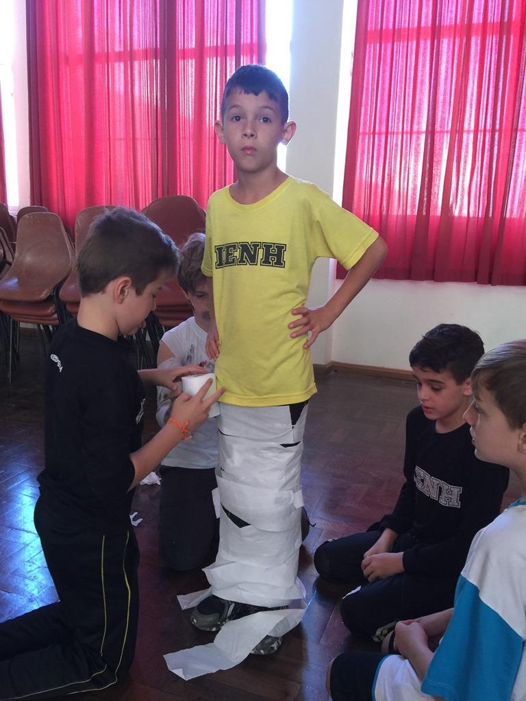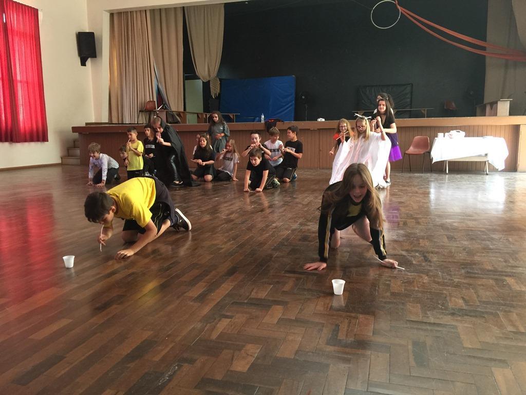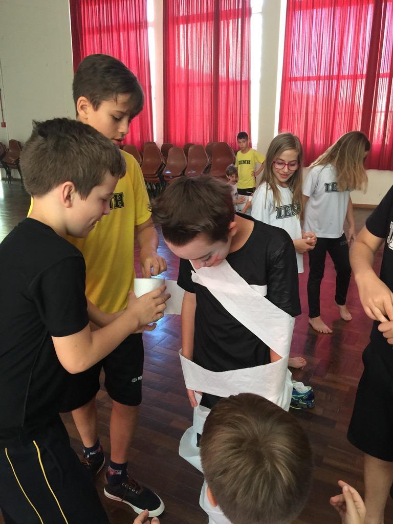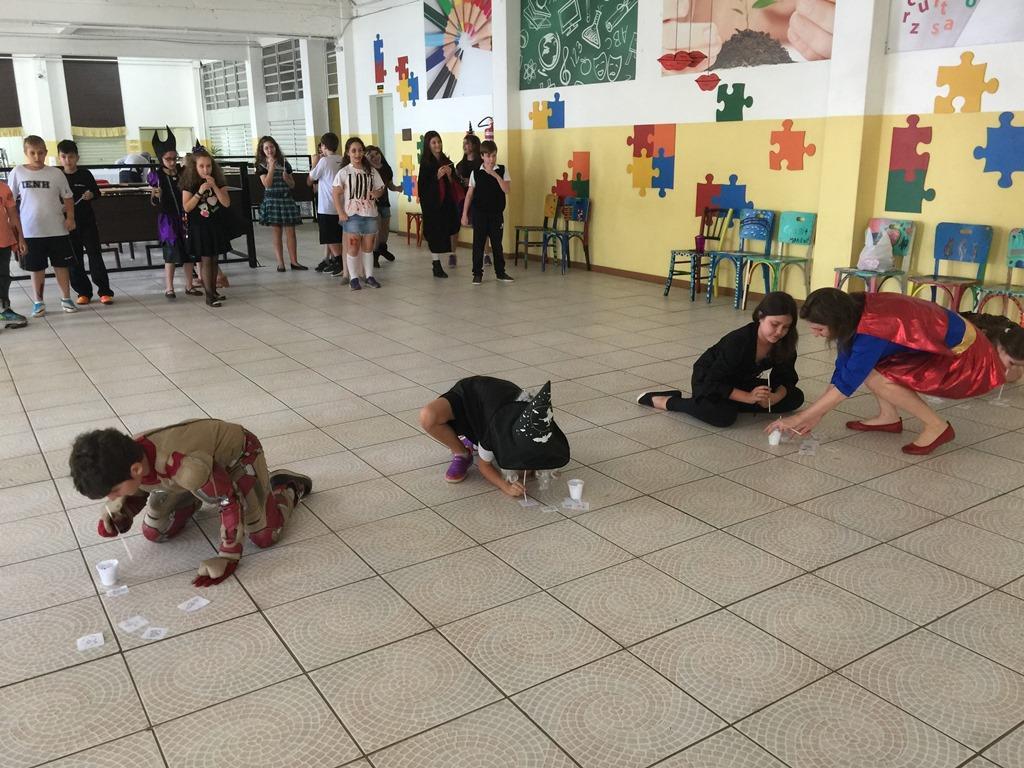 Em grupos, os alunos participaram de uma gincana organizada pela Professora Cristiane Ely Lemke, vivenciando outras brincadeiras, como “a corrida do amendoim”, “enrolando a múmia”, “caça às abóboras”, entre outras. As turmas também trouxeram lanches típicos e decorados para dividirem com os colegas. Para finalizar o dia, visitaram outras turmas pedindo doces.