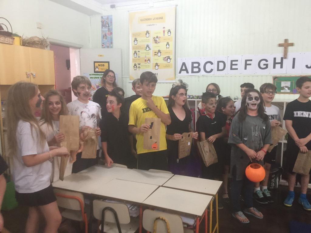 Durante o dia 07 de novembro, os alunos assistiram vídeos sobre a história e a origem do Halloween, bem como leram textos e realizaram atividades sobre o tema. Além disso, confeccionaram uma sacolinha para, mais tarde, fazerem a tradicional brincadeira Trick or Treat (Doces ou Travessuras).