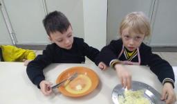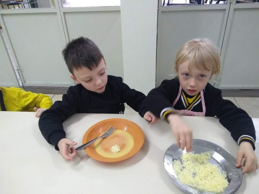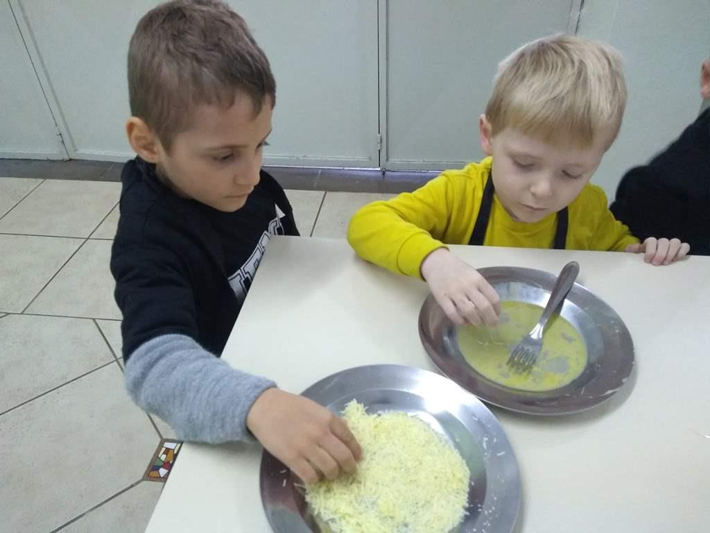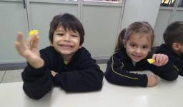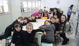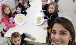 Organizados em duplas, os estudantes foram orientados em Inglês pelas Teachers Vitória Ornelas e Giórgia Berwanger a realizar todo o passo a passo para o preparo da omelete. Eles bateram os ovos e misturaram os demais ingredientes. Ao final, puderam deliciar-se com o alimento.