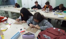 Trabalhando com a representação da figura humana e a forma como eram construídos relevos e esculturas em templos ou monumentos, a tarefa foi proposta para que os alunos reproduzissem rostos. Com a massa de modelar, eles tiveram liberdade de criação, podendo misturar as cores. Assim como os romanos, alguns estudantes tentaram retratar seus ídolos do esporte e da música.