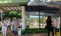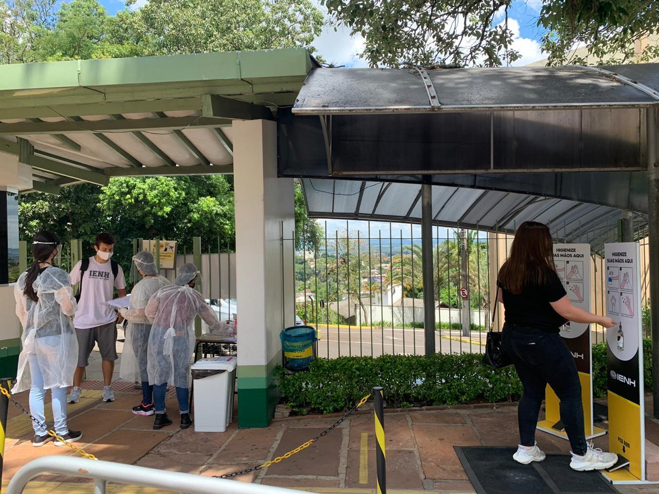 Antes da entrada na Unidade, os estudantes passaram pela triagem, com aferição da temperatura, higienização das mãos e calçados e respondendo a um questionário.