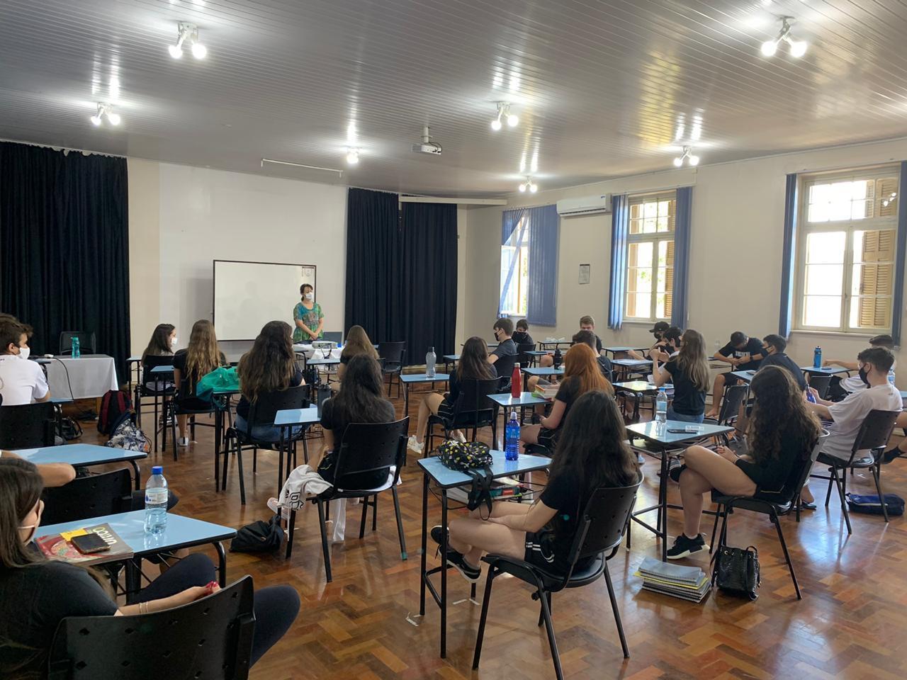 Um aulão preparado pelos Professores – Ana Ferraz e Marcelo Vier iniciou o encontro. Após, os alunos ouviram sobre o Projeto Um Olhar para o Outro e Fórum Social. O momento teve a participação da Coordenadora de Programas Socioambientais – Isabel Lizakoski. Ao fim da tarde, a Psicóloga Educacional – Patrícia Neumann falou sobre a pandemia, sentimentos e o período que os alunos se encontram. As atividades também foram transmitidas pelo Google Meet para os estudantes que estão acompanhando as aulas remotamente.