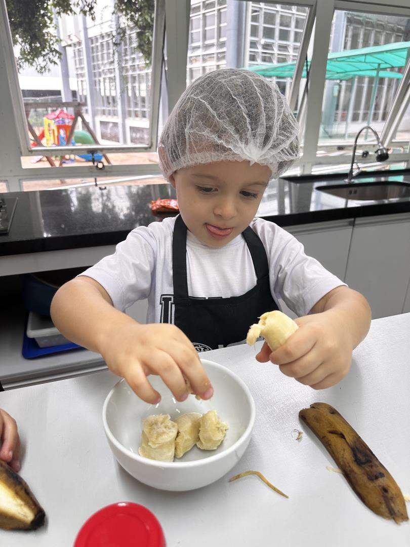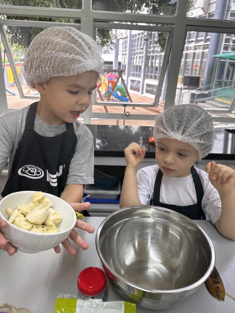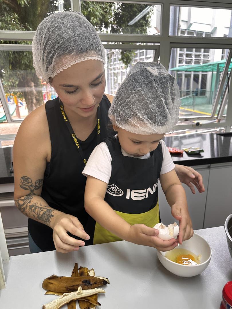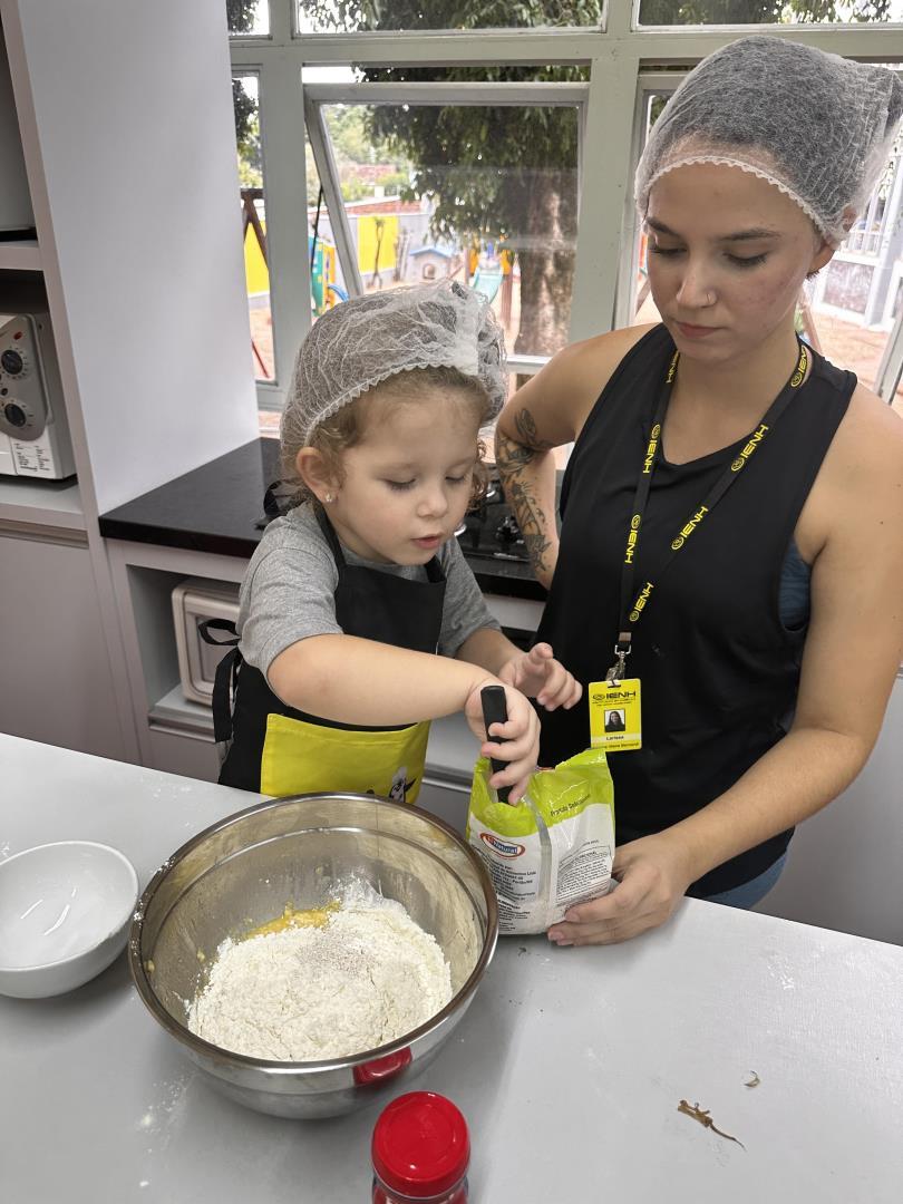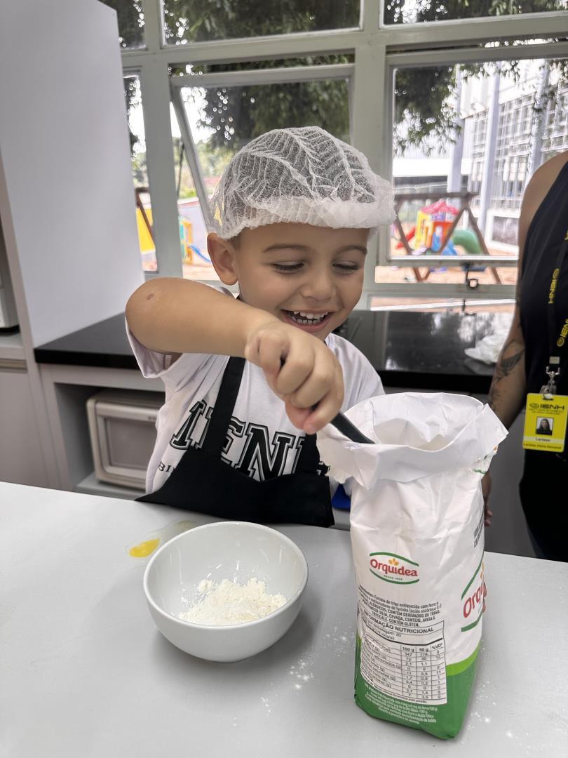 No dia 25 de março, as crianças do Kindergarten 3B da Educação Infantil do Currículo Internacional Bilíngue da IENH – Unidade Pindorama participaram de uma Cooking Class especial na Cozinha Escola, unindo literatura e experiências práticas em uma proposta envolvente e significativa.