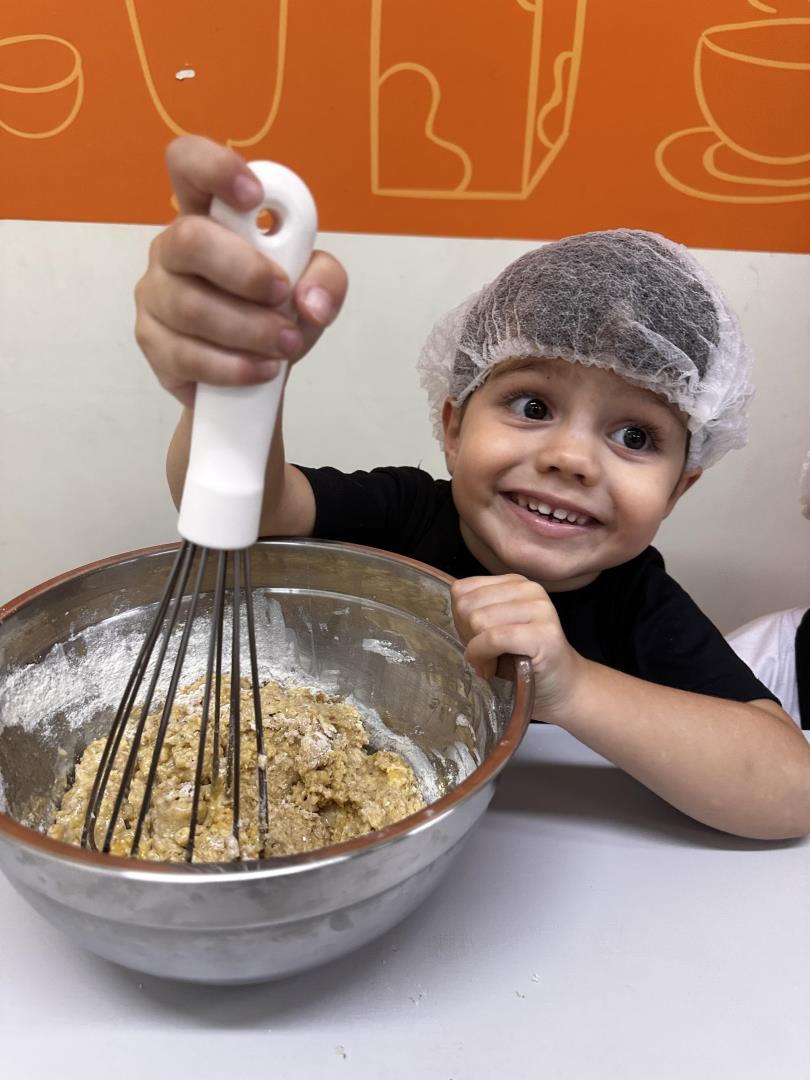 Durante a prática, a turma participou ativamente do preparo dos cupcakes, explorando ingredientes, texturas e sabores, em um momento que integrou aprendizado, cooperação e diversão.