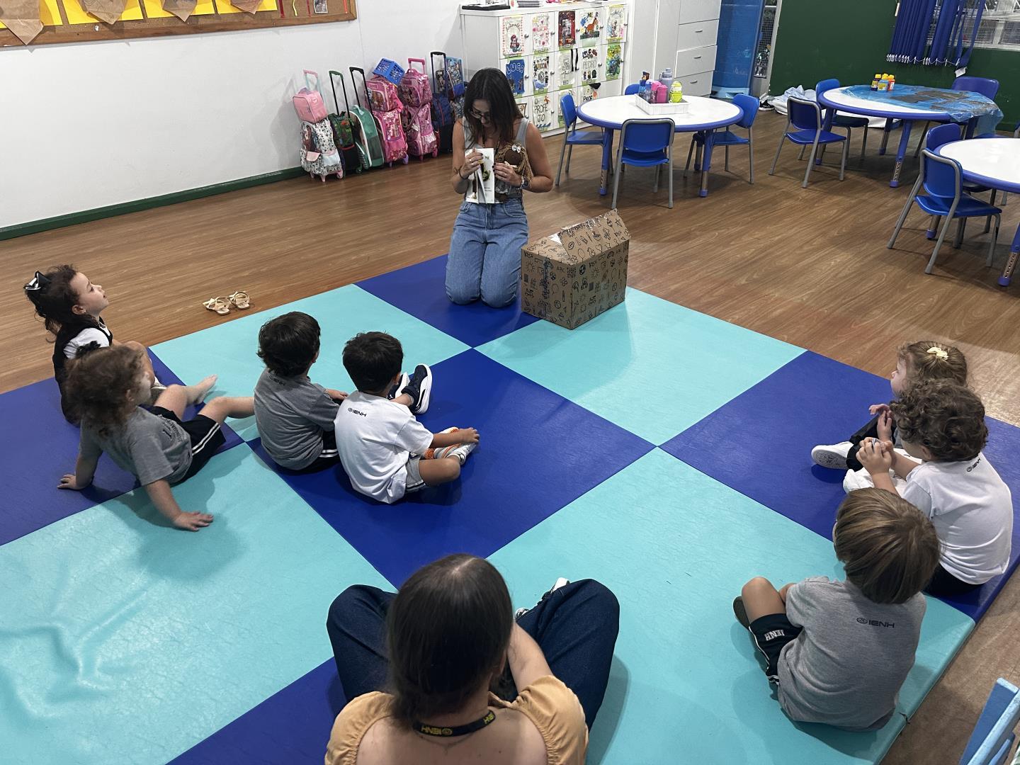A atividade, foi conduzida pela professora Joana Schneider Machado e pela teacher Larissa Vieira Bernardi, e teve início a partir da contação das histórias A Caixa de Jéssica, de Peter Carnavas, e Maisy Cleans Up, de Lucy Cousins. As narrativas apresentam um elemento em comum que rapidamente despertou o interesse das crianças: deliciosos cupcakes presentes nos universos das personagens.