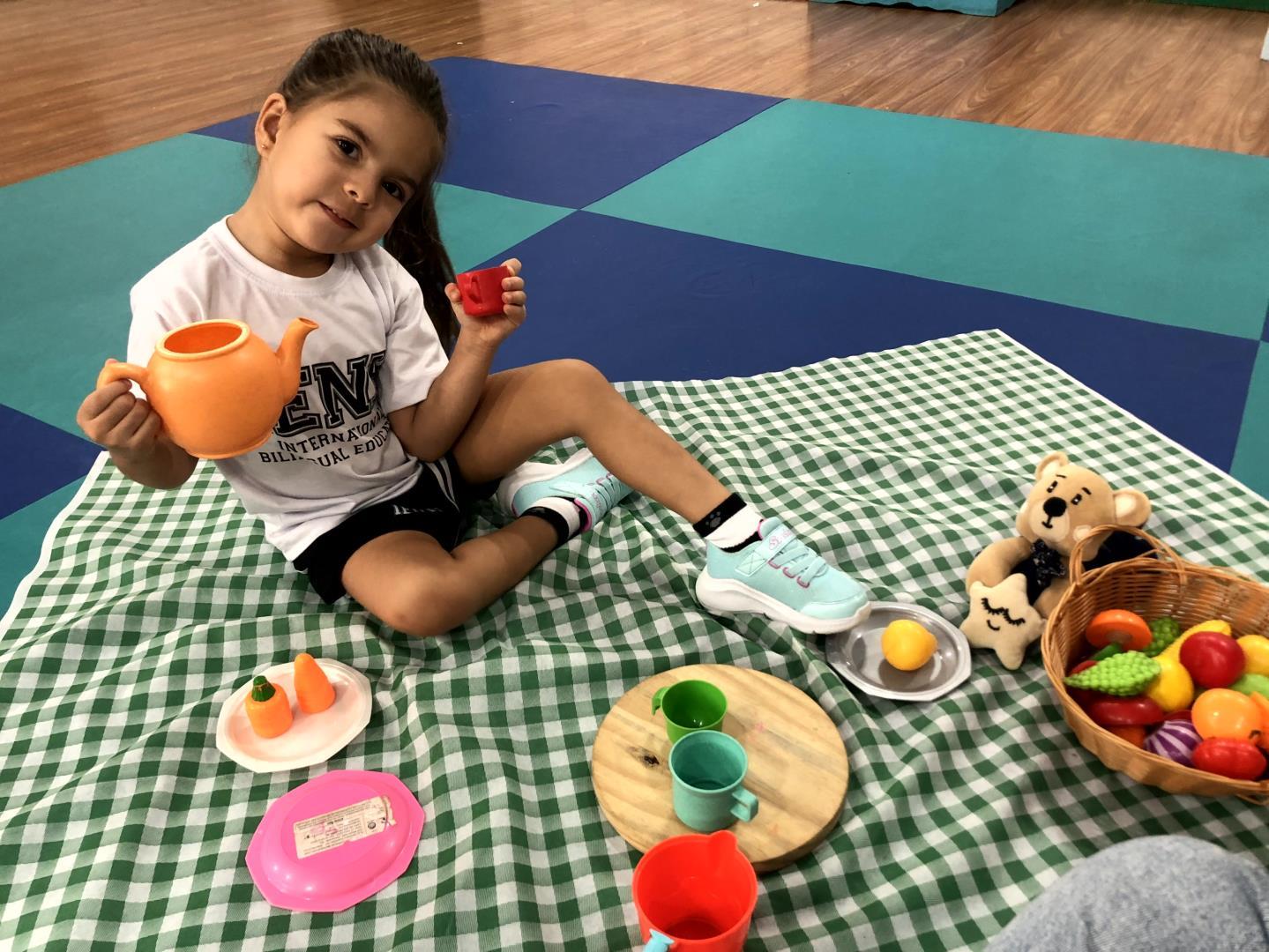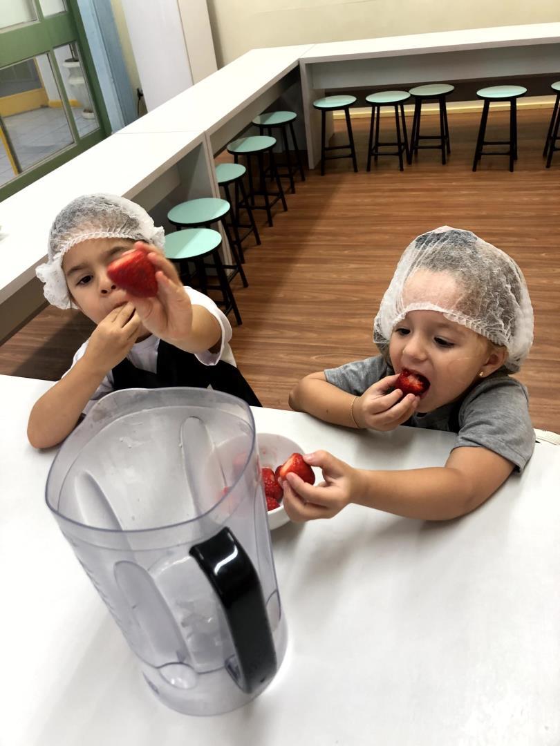 A proposta realizada no dia 19 de março, com o Kindergarten 3B da Educação Infantil do Currículo Internacional Bilíngue da IENH – Unidade Pindorama, buscou integrar elementos das duas histórias, explorando tanto o alimento em destaque, o morango, quanto as cores e rimas presentes na narrativa em língua inglesa.
