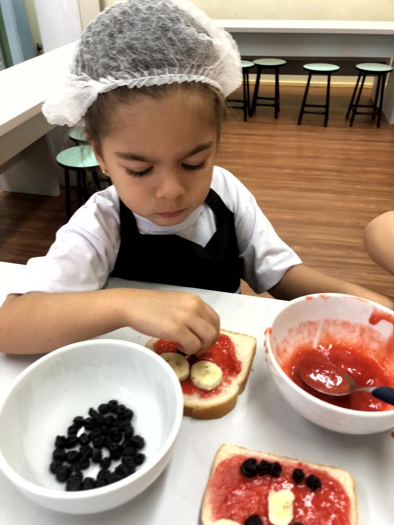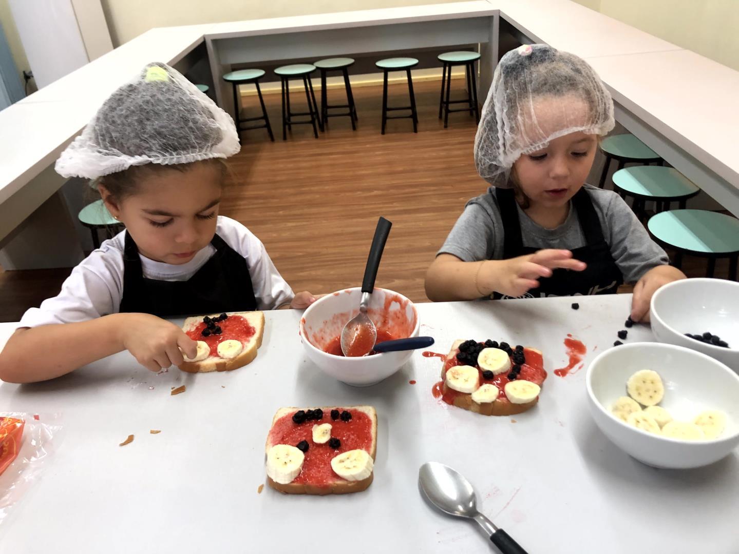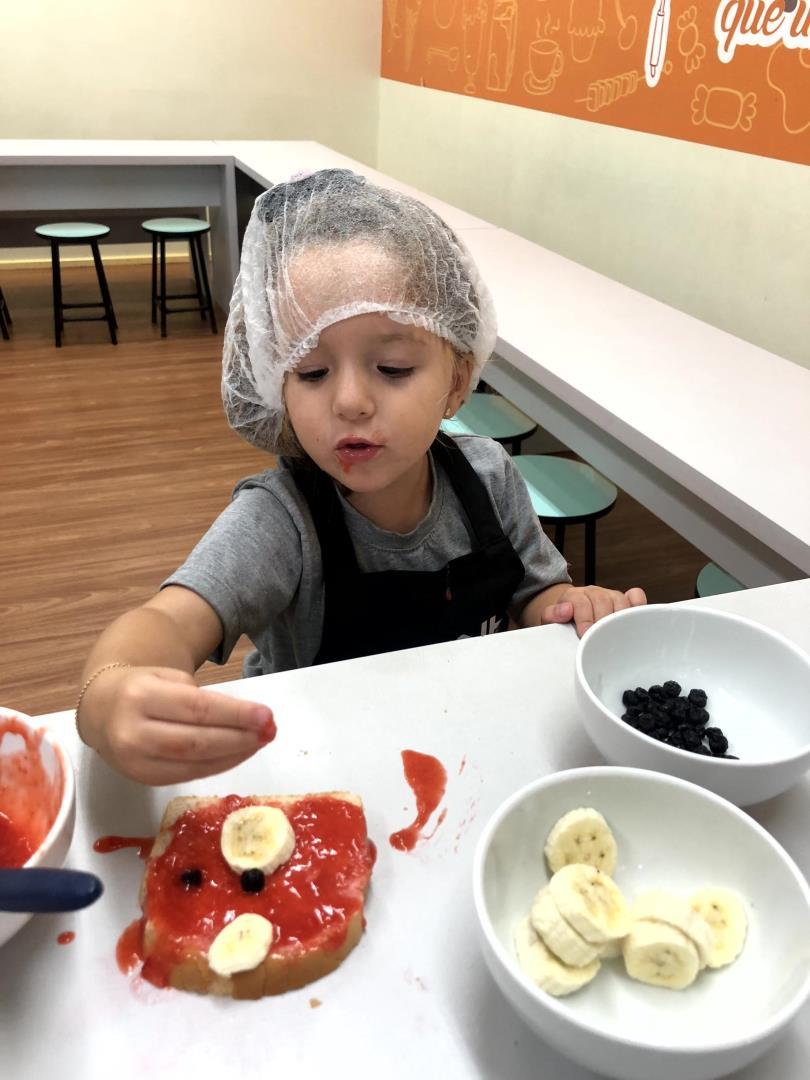 Como parte da experiência, as crianças participaram de um Cooking Class, onde prepararam um sanduíche em formato de urso com geleia de morango, estabelecendo uma conexão direta com o personagem do Grande Urso Esfomeado. A atividade estimulou a participação ativa das crianças ao mesmo tempo em que trabalhou aspectos importantes do desenvolvimento infantil, como linguagem, percepção de cores e coordenação motora.