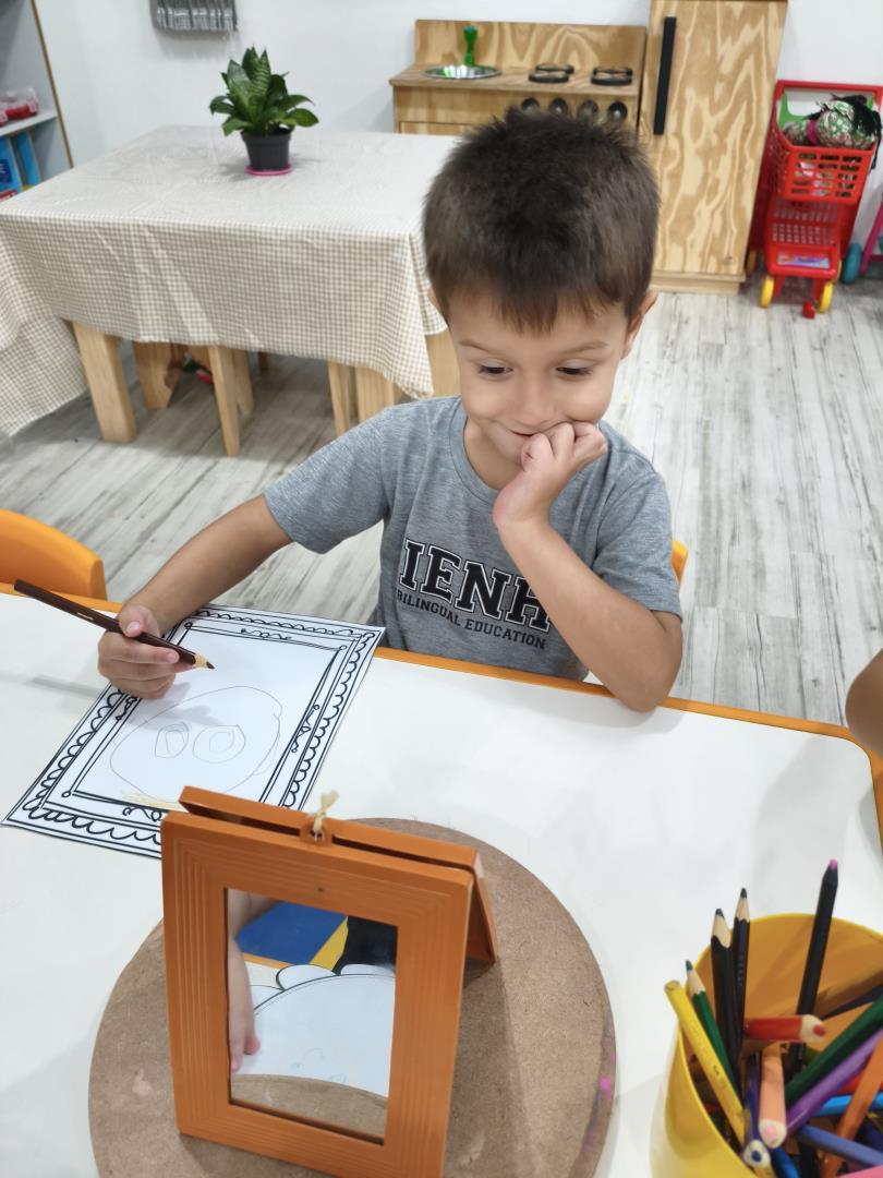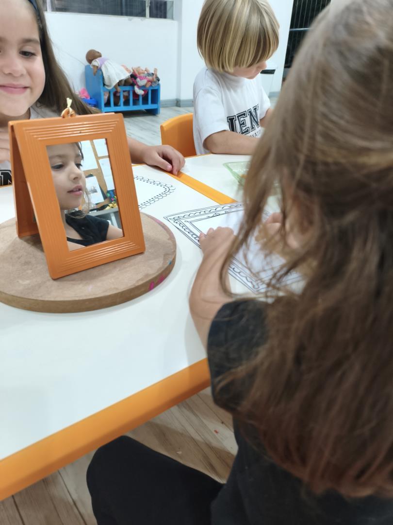 O projeto surgiu a partir das curiosidades manifestadas pelas próprias crianças durante as rodas de conversa, especialmente sobre seus nomes, sobrenomes e identidades. Neste primeiro momento, o grupo está envolvido em descobertas iniciais sobre o “eu”, explorando quem são por meio de vivências como a observação no espelho, produções de autorretratos e identificação dos nomes em diferentes contextos da rotina escolar.