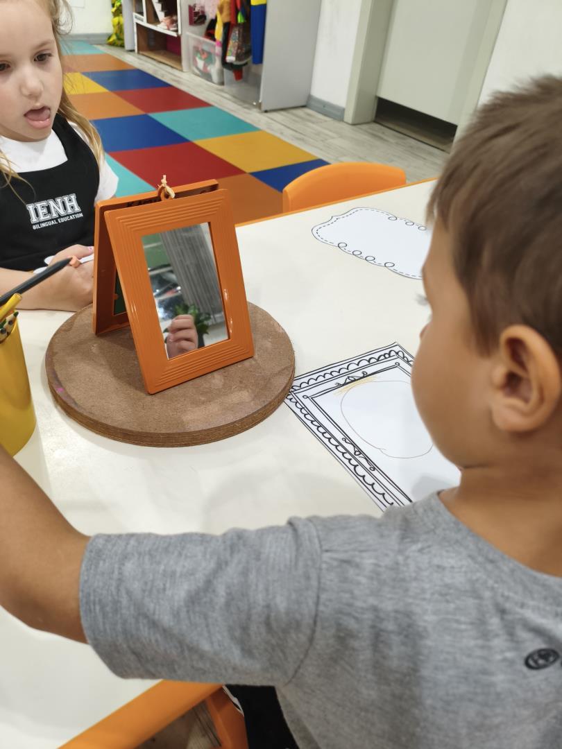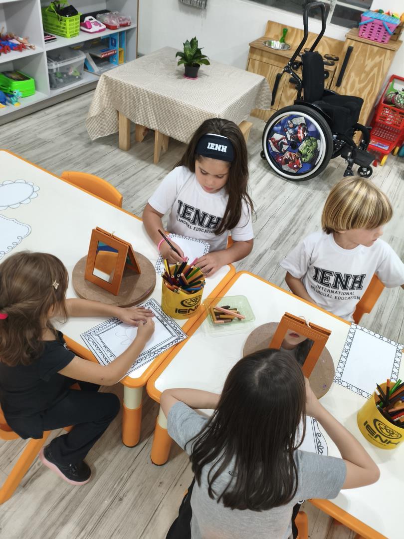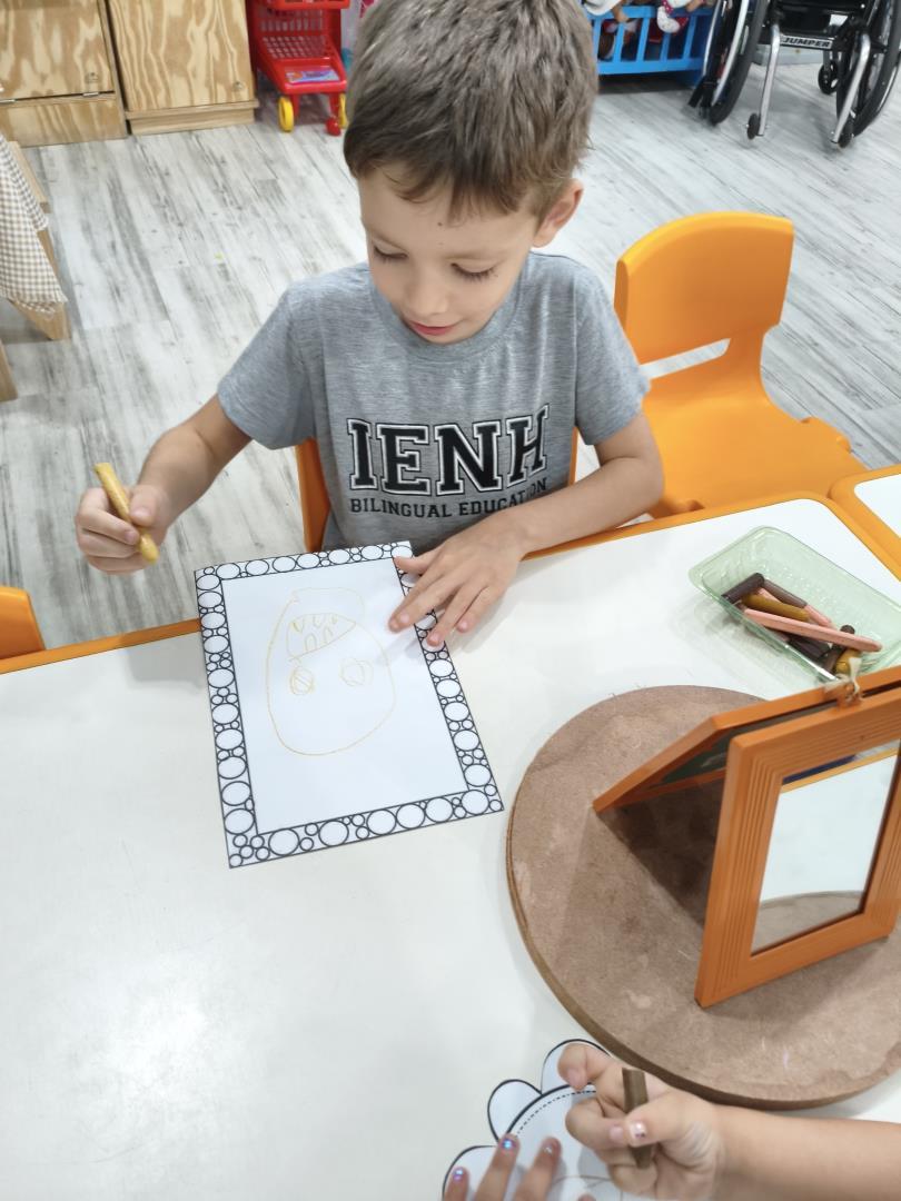 As crianças do Kindergarten 4A da Educação Infantil do Currículo Internacional Bilíngue da IENH – Unidade Oswaldo Cruz deram início ao projeto investigativo “Who Am I? Meu lugar no mundo: descobrindo quem eu sou”, com o objetivo de favorecer as primeiras construções da identidade, incentivando o reconhecimento de si mesmas, de seus nomes, características e histórias. A proposta busca promover experiências significativas que estimulem a oralidade, a expressão e o sentimento de pertencimento ao grupo.
