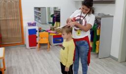 Para realizar um gráfico, a professora questionou os alunos sobre suas alturas, enquanto registrava suas medidas com um barbante. Foi a pergunta realizada que despertou a curiosidade dos pequenos. Com isso, Andréia apresentou à turma vários tipos de réguas que são utilizadas para medir e, logo após, mediu os mesmos com uma fita métrica.