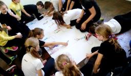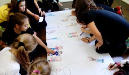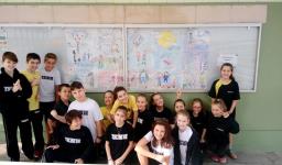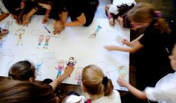 Em seguida, os estudantes passaram a trabalhar de forma conjunta, reunindo os heróis e analisando suas características e missões. A Professora Letícia entregou a eles um painel em branco e, a partir disso, o trabalho foi colaborativo, precisamente à 34 mãos. Eles formaram ligas de heróis e decidiram qual lugar do painel ocupariam, qual seria a habilidade e a fraqueza que registrariam em um balão de fala, fazendo uso da identidade criada e das regras gramaticais estudadas, e também como seria o cenário coletivo. Todos colaram seus heróis no local definido no painel e ajudaram a desenhar e colorir o cenário de fundo. O resultado do trabalho pode ser conferido no mural disponível na entrada da escola.