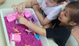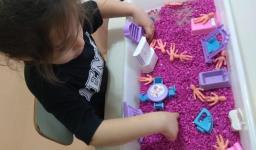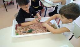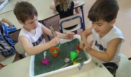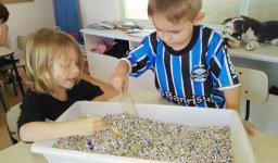 Nos últimos dias, a turma do Nível 3B da Educação Infantil da IENH – Unidade Oswaldo Cruz, em conjunto com a Professora Eneida Raquel Sander, esteve envolvida com as “bacias sensoriais que criam histórias”.