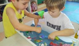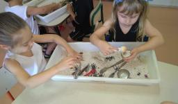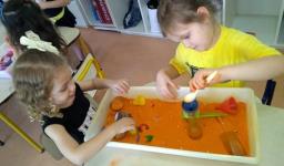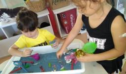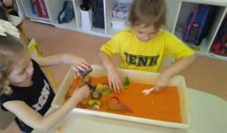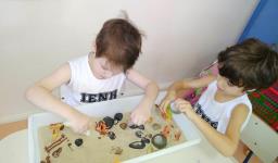 Em cada bacia foram colocados materiais diferenciados, com texturas diversas, compondo sempre um novo cenário de possibilidades. As bacias sensoriais proporcionaram uma atividade lúdica de estimulação e exploração dos sentidos, desenvolvimento da coordenação motora fina, oportunizando momentos de socialização, cooperação e organização entre colegas. Também estimularam a atenção, a construção de alguns conceitos e, principalmente, oportunizaram o desenvolvimento da imaginação e criatividade ao inventar novas histórias para cada bacia.