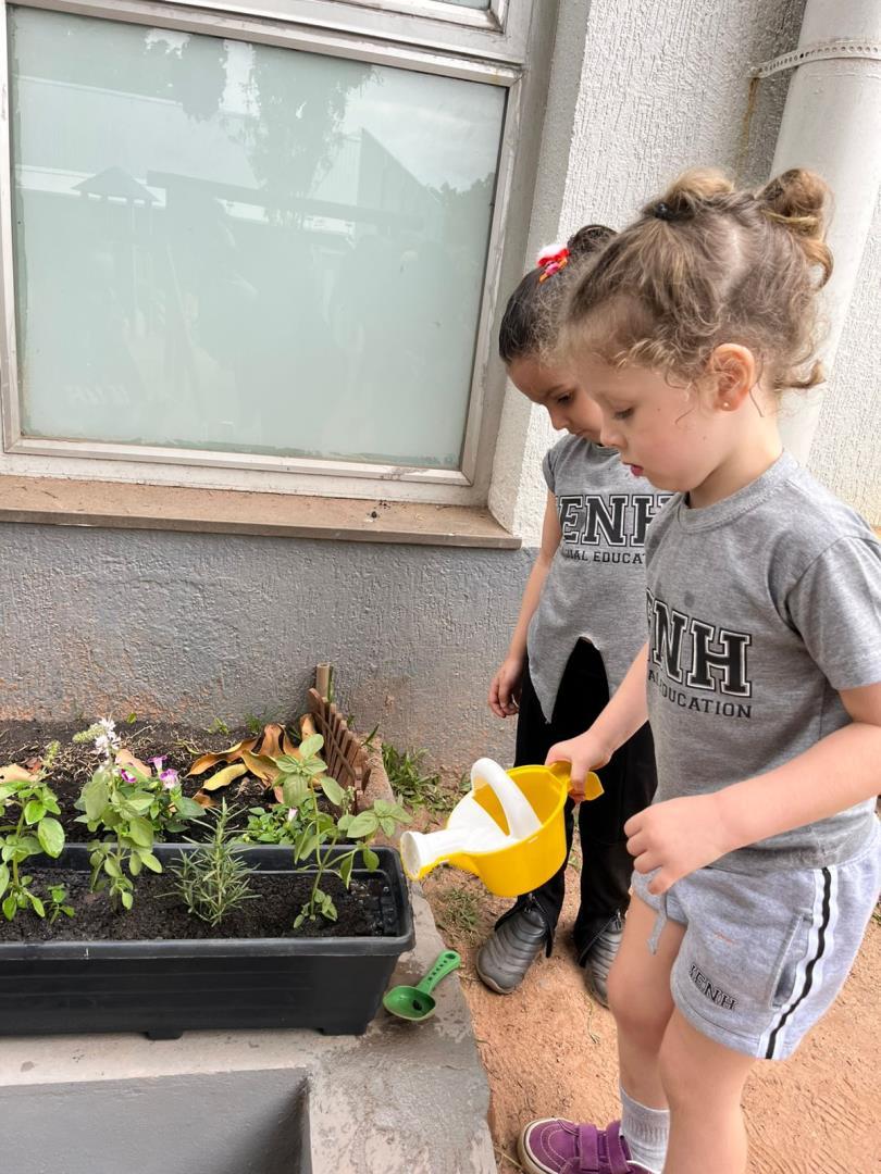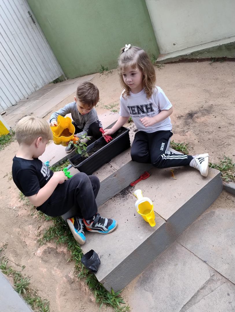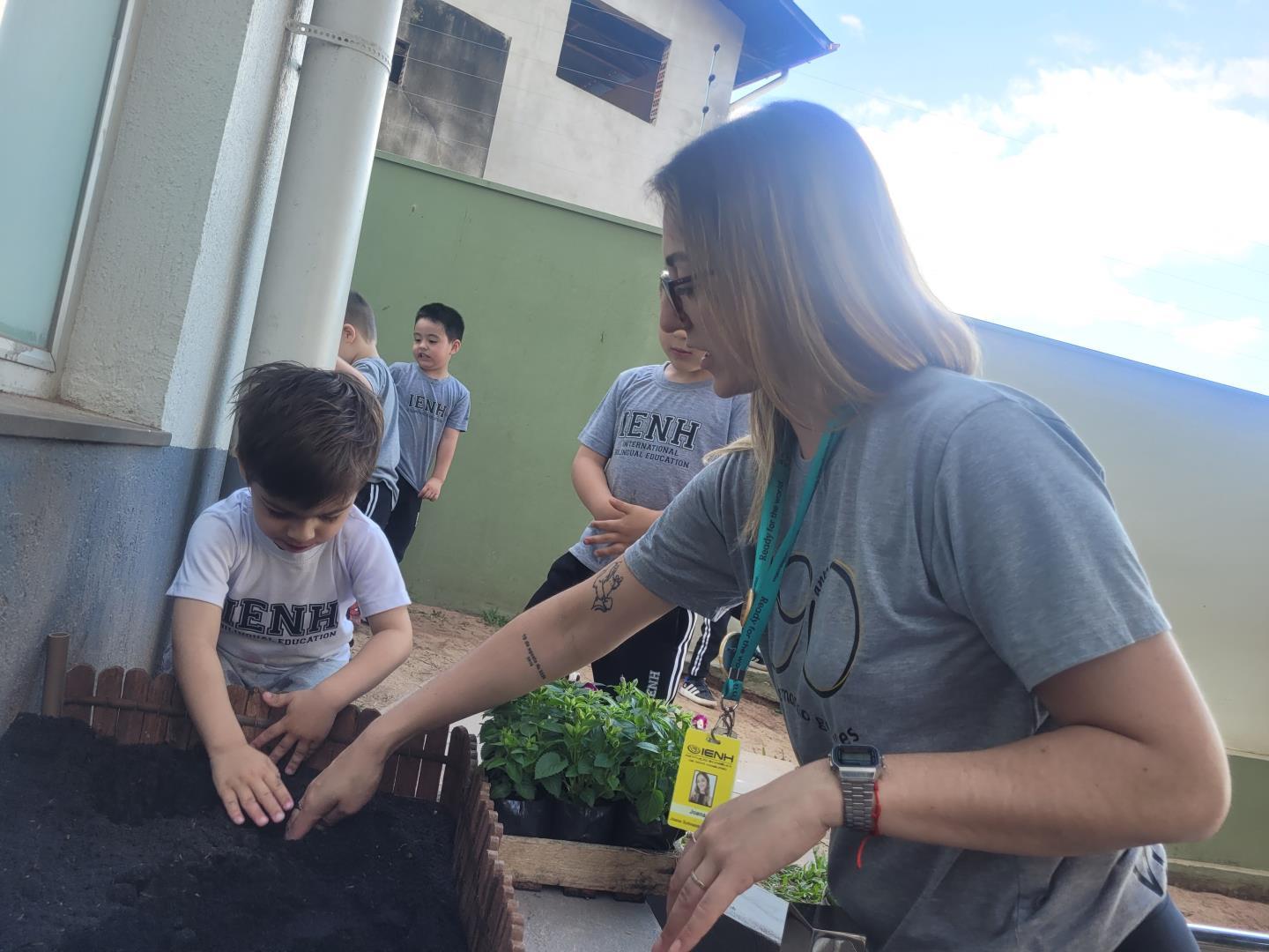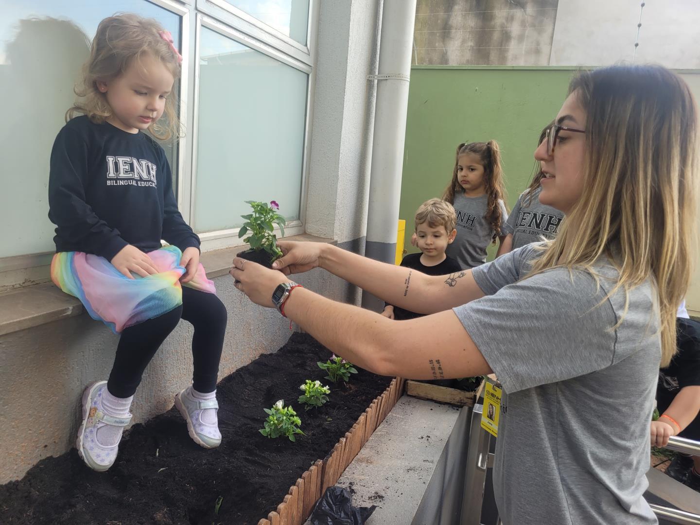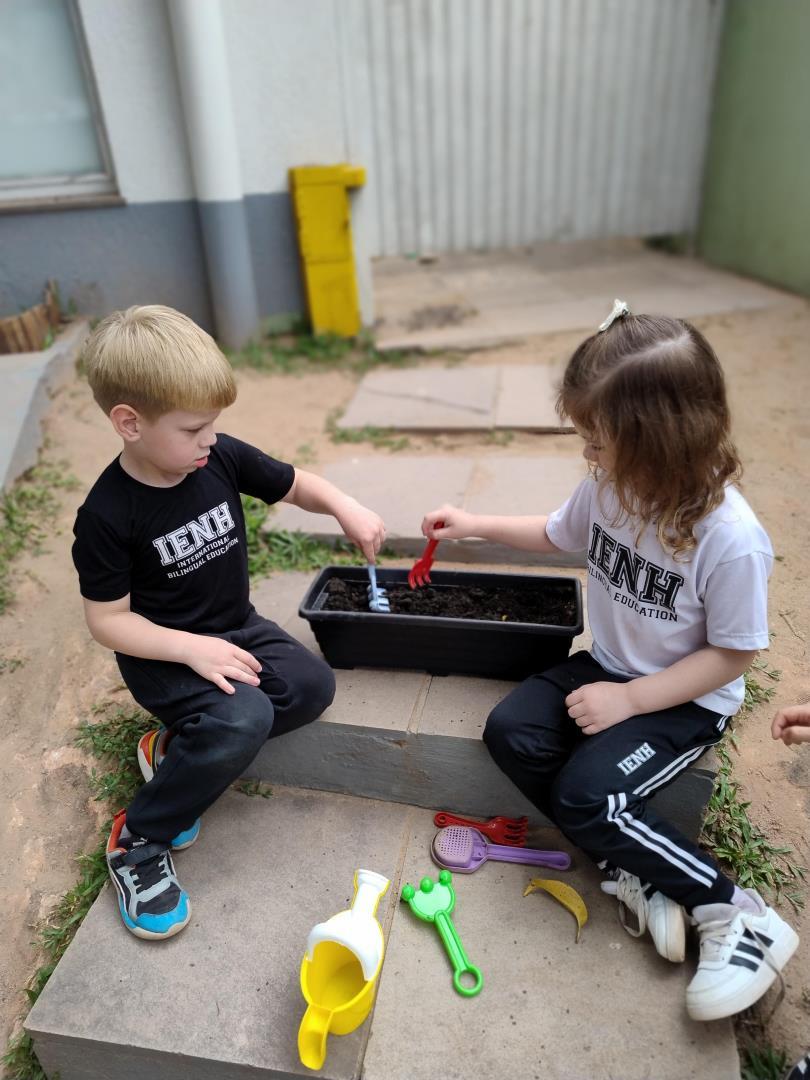 Durante os dias 02, 09 e 17 de outubro, as turmas do Kindergarten 3 da Educação Infantil do Currículo Internacional Bilíngue da IENH – Unidade Pindorama participaram de uma atividade especial no pátio da escola, voltada à observação, cuidado e valorização dos espaços coletivos.