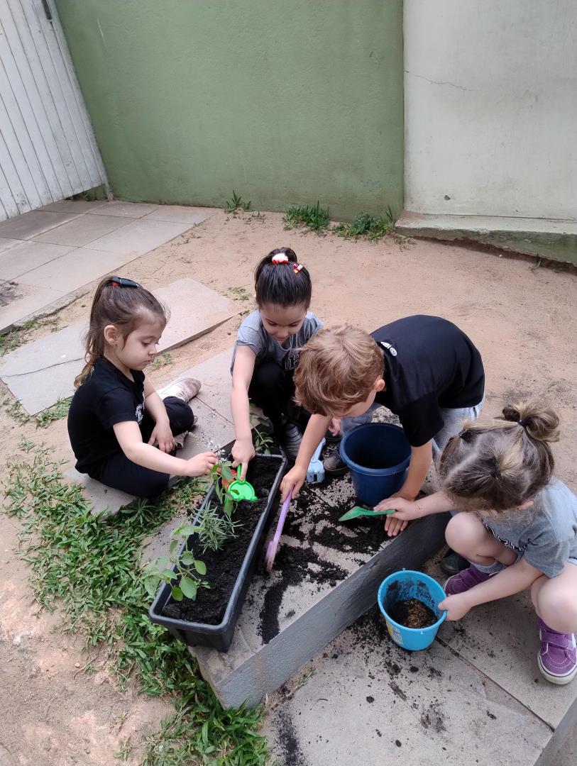 A proposta teve como objetivo estimular a comunicação entre colegas e professores, a escuta ativa e o trabalho em grupo, além de promover experiências de plantio e observação do crescimento de plantas, flores e pequenas frutas.