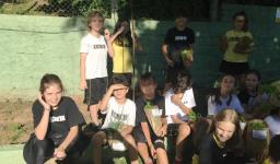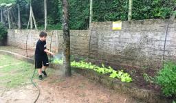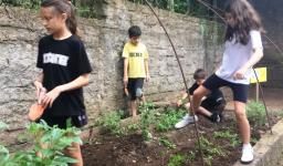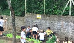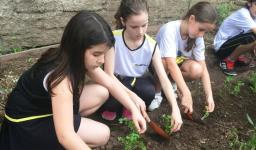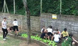 Assim, a partir de um estudo inicial sobre o solo realizado em língua inglesa, os alunos tiveram a vivência de preparar o solo, plantar, regar e colher o que plantaram, acompanhados pelas Professoras Raquel Meirose e Cristiane Ely Lemke. Identificar pelo olfato e tato as espécies de chás, temperos e vegetais que cultivaram também fez parte da proposta.