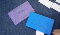 Ao concluírem o jogo, criaram envelopes para guardar as cartas e levar o jogo para casa. Assim, o tema do final da semana foi jogar com a família e registrar esse momento através de um desenho e também de recados deixados sobre a brincadeira.