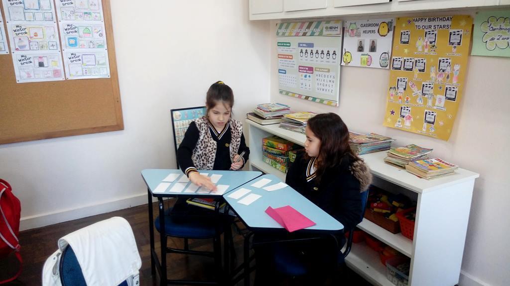 “Os alunos participaram de todo o processo de construção do jogo, selecionando o vocabulário estudado, desenhando e escrevendo as cartas do jogo com capricho. Todas as mensagens das famílias sobre o jogo foram positivas, considerando que, além de divertirem-se muito juntos, também relembraram seus conhecimentos em Inglês, testaram sua memória e aprenderam com os filhos de forma lúdica”, relata a Teacher Letícia.