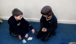 De tudo o que fizeram, em um dos momentos, eles foram desafiados pela teacher Letícia Schmitz a escolherem as atividades que mais gostaram para desenvolver um jogo para memorizar essas palavras. O jogo da memória era composto de pares de ilustrações produzidas pelos alunos e a escrita das palavras em Língua Inglesa. Cada aluno usou sua criatividade para desenhar e representar as atividades favoritas.