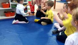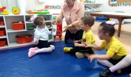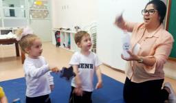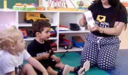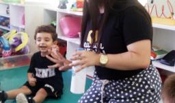 No Nível 2A, os desenhos eram de emojis dos sentimentos que foram explorados nas aulas de inglês (happy, angry, scared, sleepy). Na turma do Nível 2B, eram os personagens da história da “Incy Wincy Spider” (spider, water spout, rain e sun). Depois de apresentar os objetos, a Teacher pediu a ajuda dos alunos para colorir os desenhos de um forma diferente: com mágica!