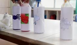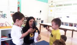 A partir dos projetos de estudos das turmas dos Níveis 2 da Educação Infantil da IENH – Unidade Oswaldo Cruz, a Teacher Cláudia Felix trouxe para os alunos garrafas com desenhos diferentes, cheias de água e varinhas mágicas.
