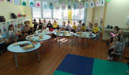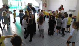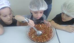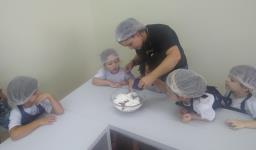Uma cooking class especial foi realizada. Na atividade, as crianças produziram “cri-cri” para encher as casquinhas de ovos preparadas anteriormente. Brincadeiras como “Coelhinho sai da toca”, “Corrida de ovos na colher” e “Arremesso de ovos em cesto” foram desenvolvidas com as crianças, que participaram com muito entusiasmo.