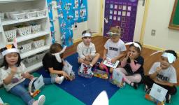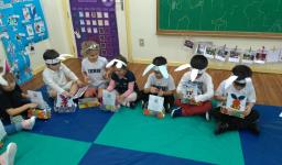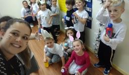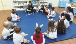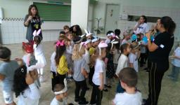 Títulos como “O Coelho que não era de Páscoa” e “O caso dos ovos” foram escolhidos para a leitura aos alunos. Abordando o sentido bíblico da Páscoa, as professoras dramatizaram o conto “Uma história de Páscoa”, utilizando personagens como super-heróis, brincando com o imaginário infantil.
