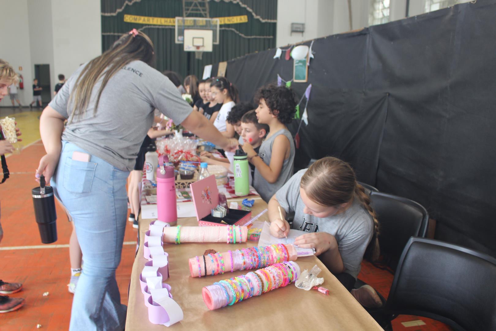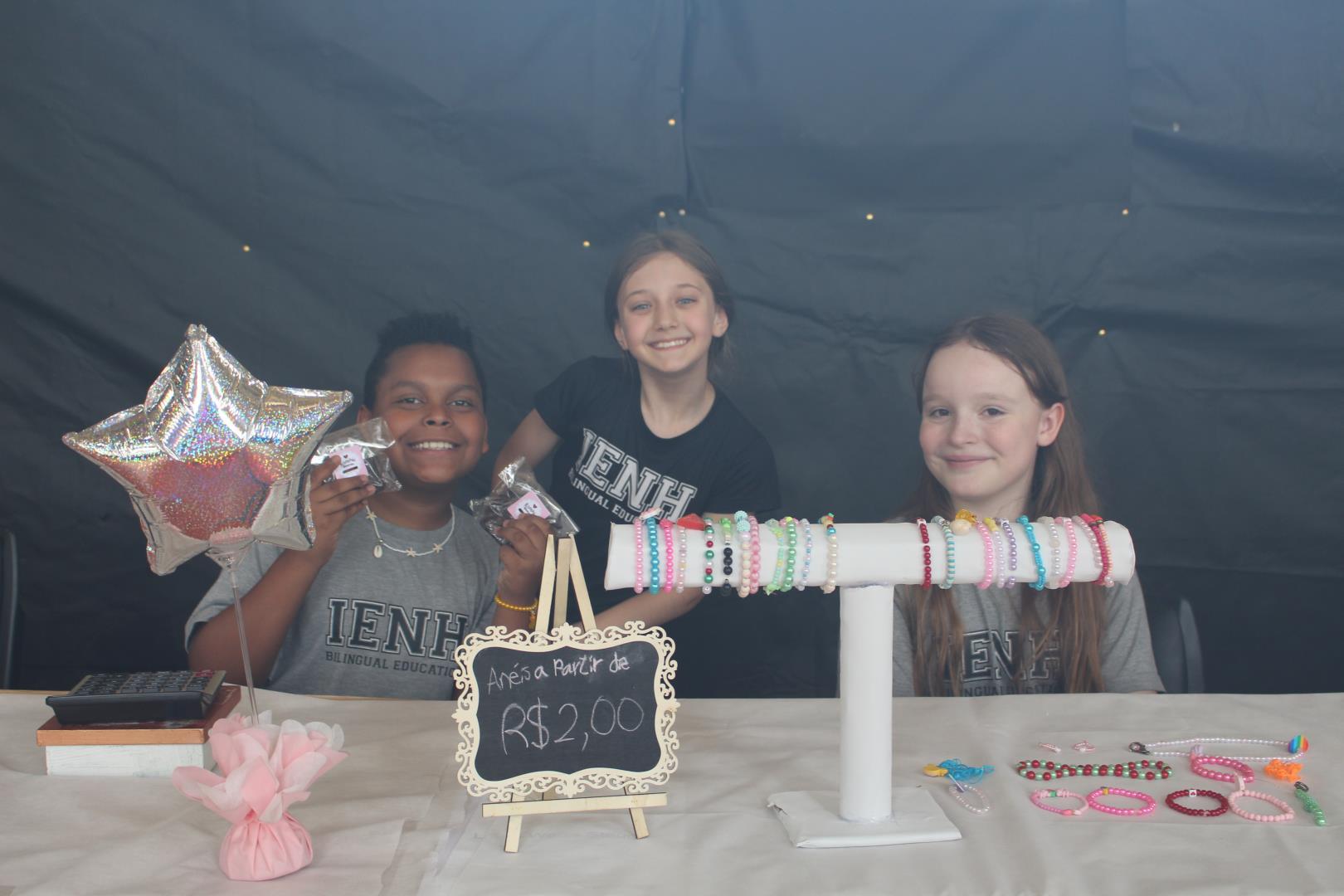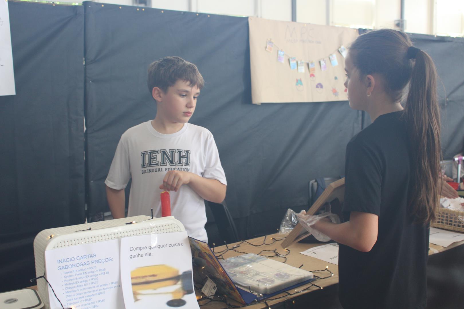 O evento envolveu turmas do Year 3 ao Year 6 do Ensino Fundamental do Currículo Internacional Bilíngue da IENH, que prepararam e expuseram uma grande variedade de produtos, como cartinhas colecionáveis, pulseiras, sacolés, tortas, brigadeiros, pipoca, cosméticos e diversos outros itens. A diversidade das bancas demonstrou o engajamento e o espírito empreendedor dos estudantes, que organizaram seus espaços, divulgaram seus produtos e atenderam o público com entusiasmo.