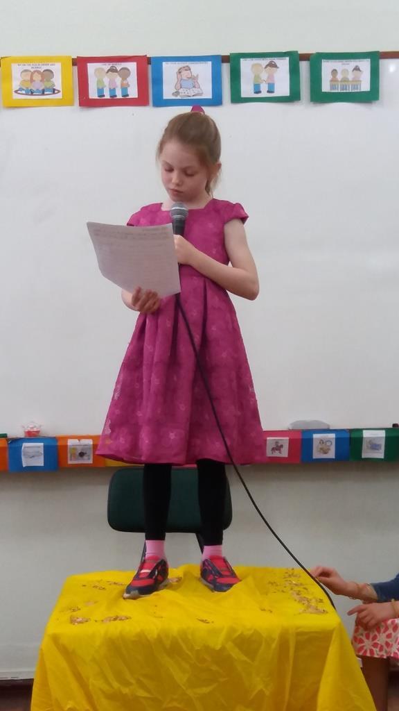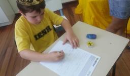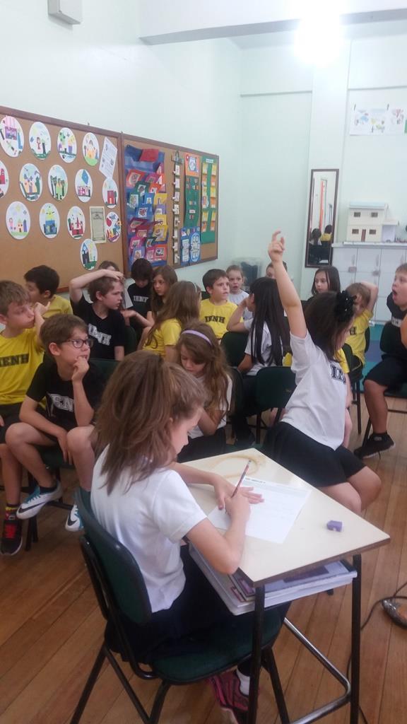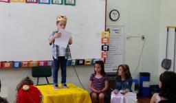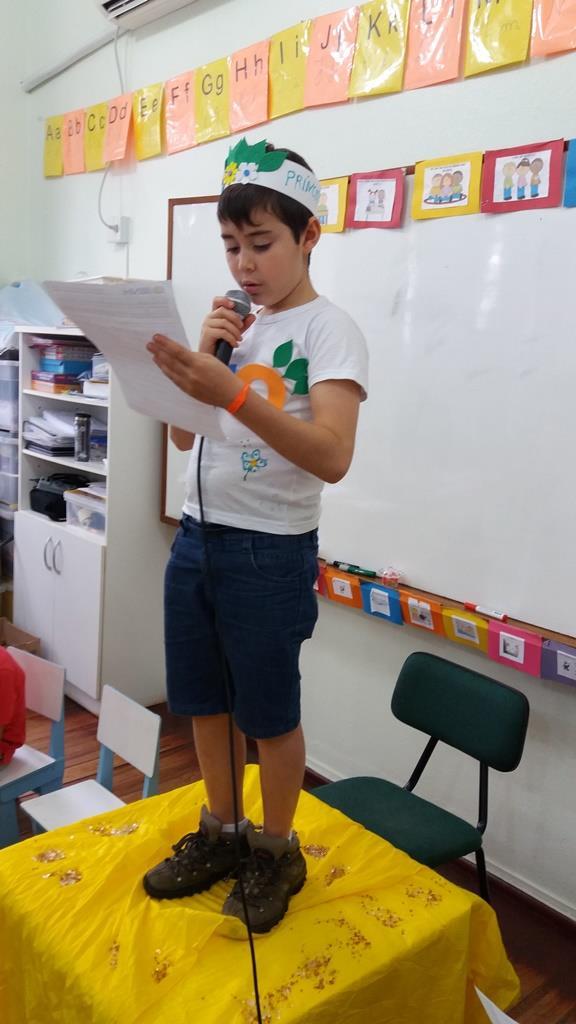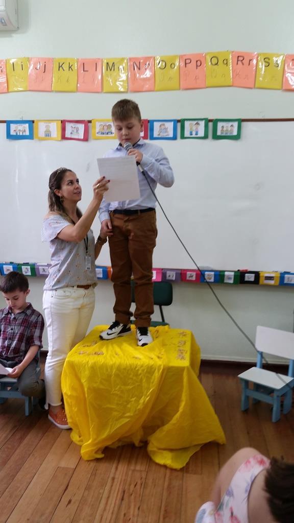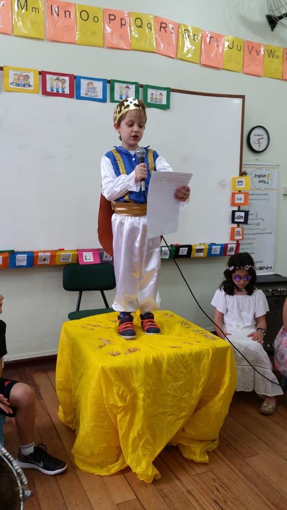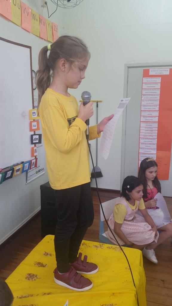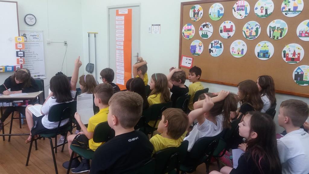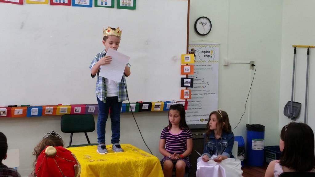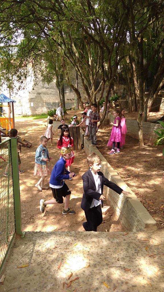 Ao final, cada aluno recebeu uma coroa que continha uma poção mágica para solucionar os problemas ambientais dos reinos: balinhas de goma! Estas foram encontradas após uma caça ao tesouro em Inglês.