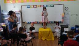 “Foi um momento de misturar fantasia e realidade num encontro entre príncipes e princesas modernas que vivem em reinos abalados pelo desequilíbrio ambiental e social. Cansados de viver num mundo ameaçado pela extinção, ganância e falta de sensibilidade humana, príncipes e princesas participaram da reunião”, relata Simone. As Professoras Ana Paula dos Reis e Carla Jaqueline Baumgratz também organizaram o momento.