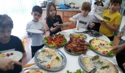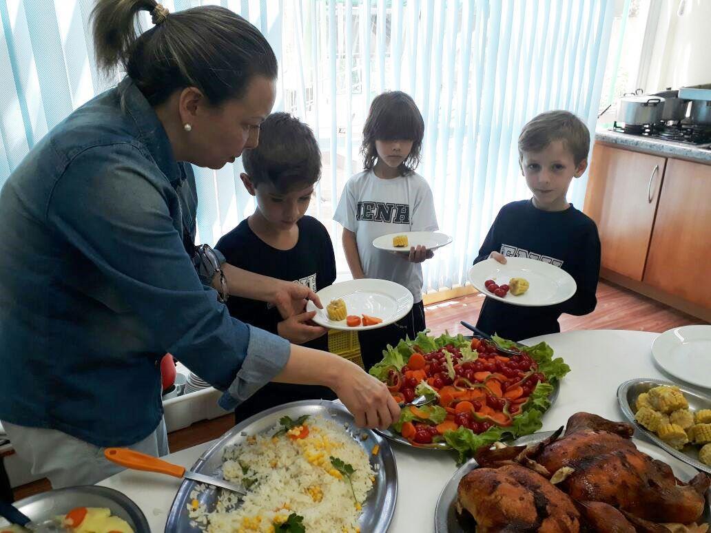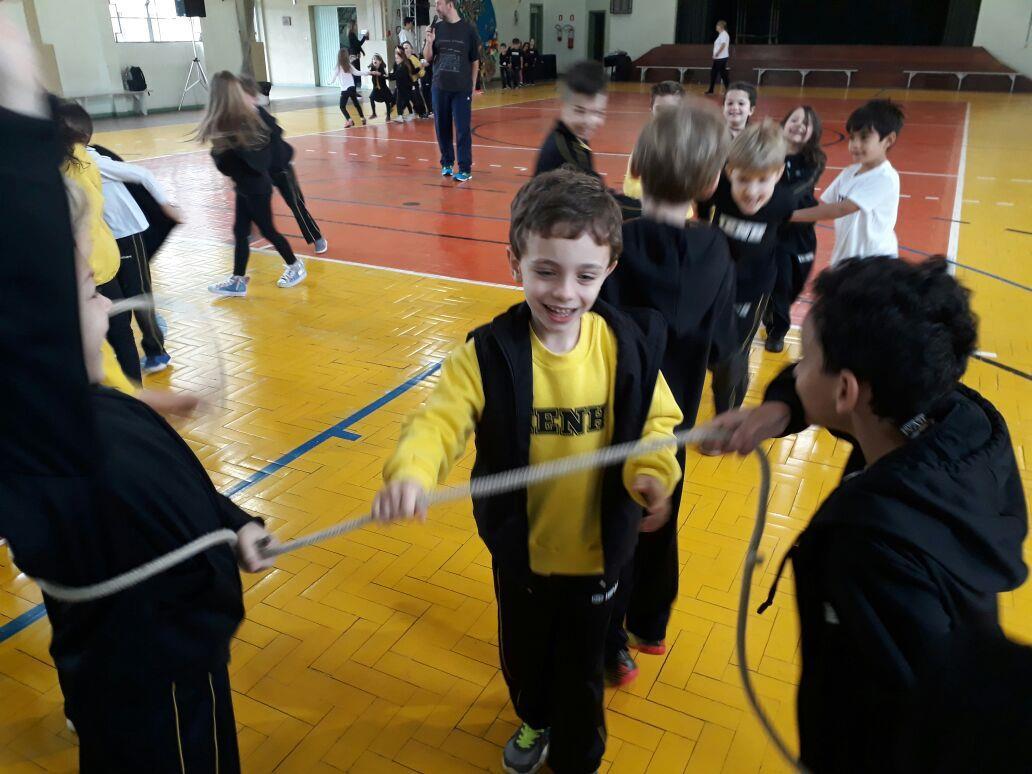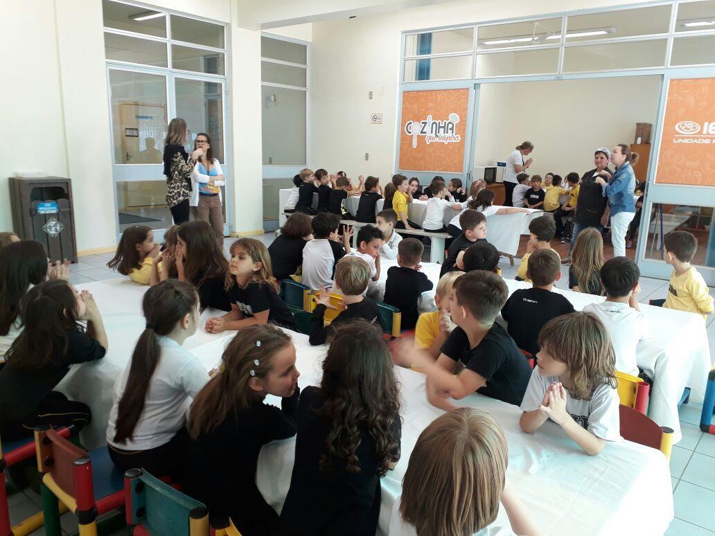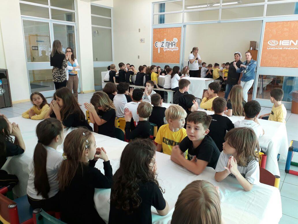 Durante o dia, as turmas assistiram aos vídeos com a história e uma canção sobre a origem da data. Realizaram a atividade individual artística com coroa de folhas e um pêndulo escrito “Give Thanks”. O almoço foi especial, contando com uma ceia com peru, purê de batatas, cenouras, milho, arroz, saladas e sucos de cranberry, laranja e uva. Os alunos também participaram de jogos cooperativos com o Professor Felipe Steigleder, em que eram desafiados a ajudarem os colegas.