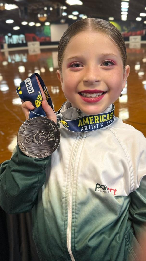 Rafaela, de 8 anos, também se destacou na competição. Na modalidade Livre, categoria Tots, conquistou a medalha de prata. No Solo Dance, modalidade dividida em duas provas, alcançou a primeira posição provisória e obteve o 4° lugar na prova de Free Dance.