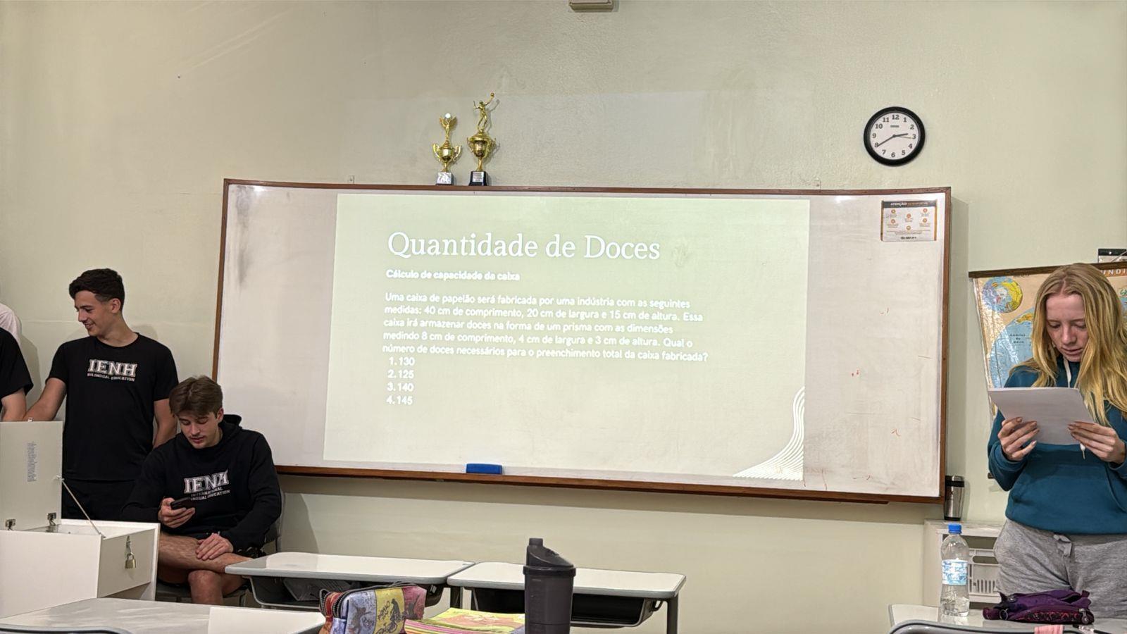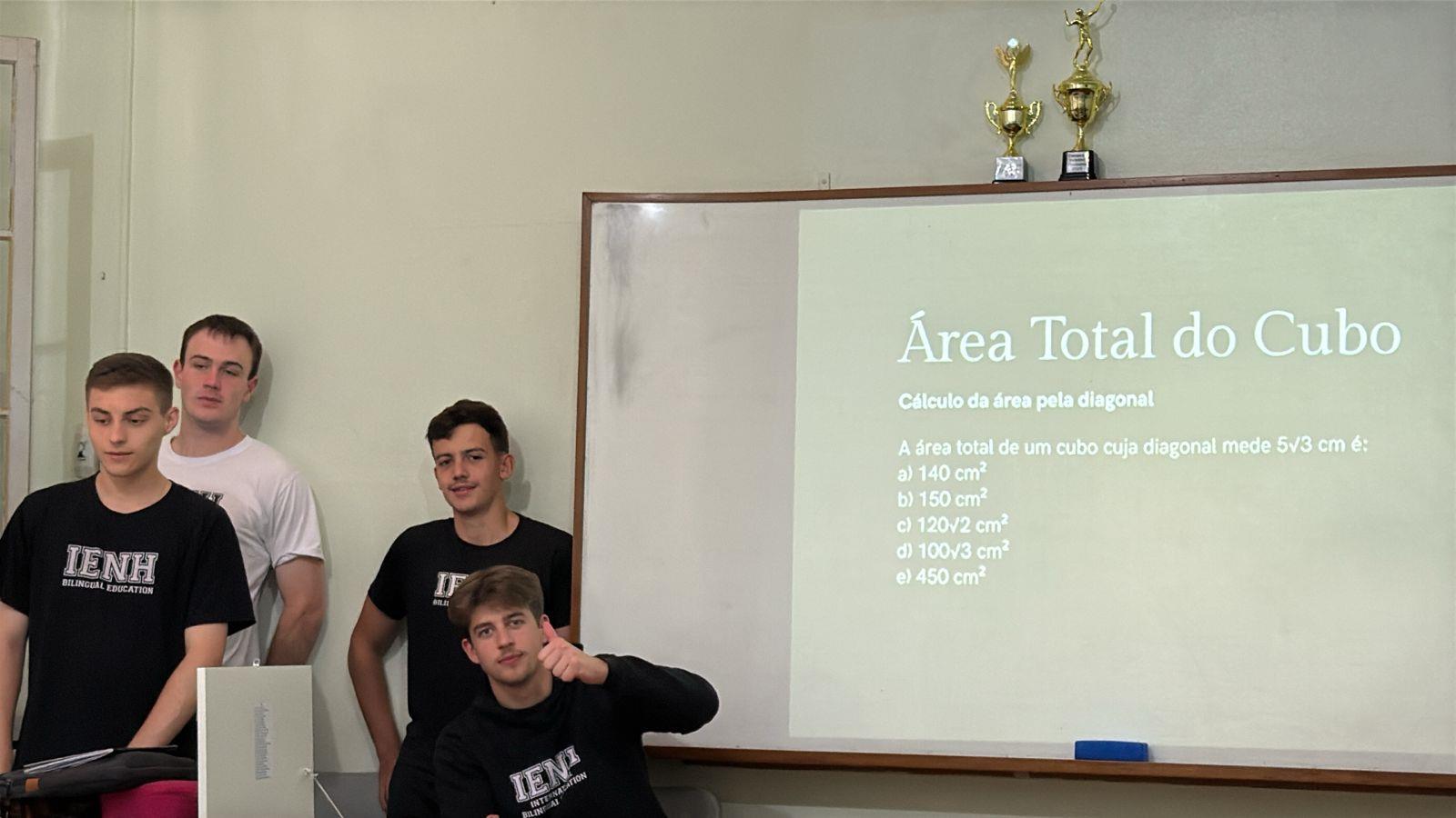 No dia 13 de novembro, os estudantes das turmas 3rd Grade A e B do Ensino Médio da IENH – Unidade Fundação Evangélica, em preparação para a próxima etapa da prova do ENEM, tiveram a tarefa de envolver conteúdos de Matemática em aplicativos de jogos, no intuito de revisá-los e como último momento para esclarecer possíveis dúvidas.