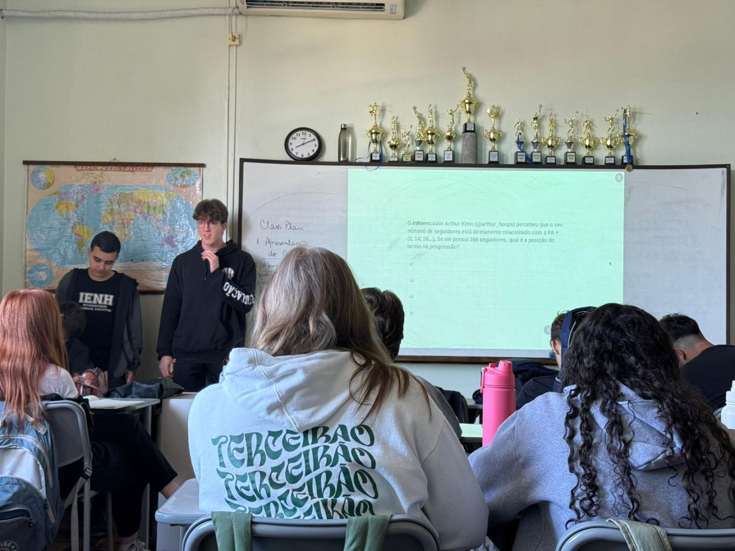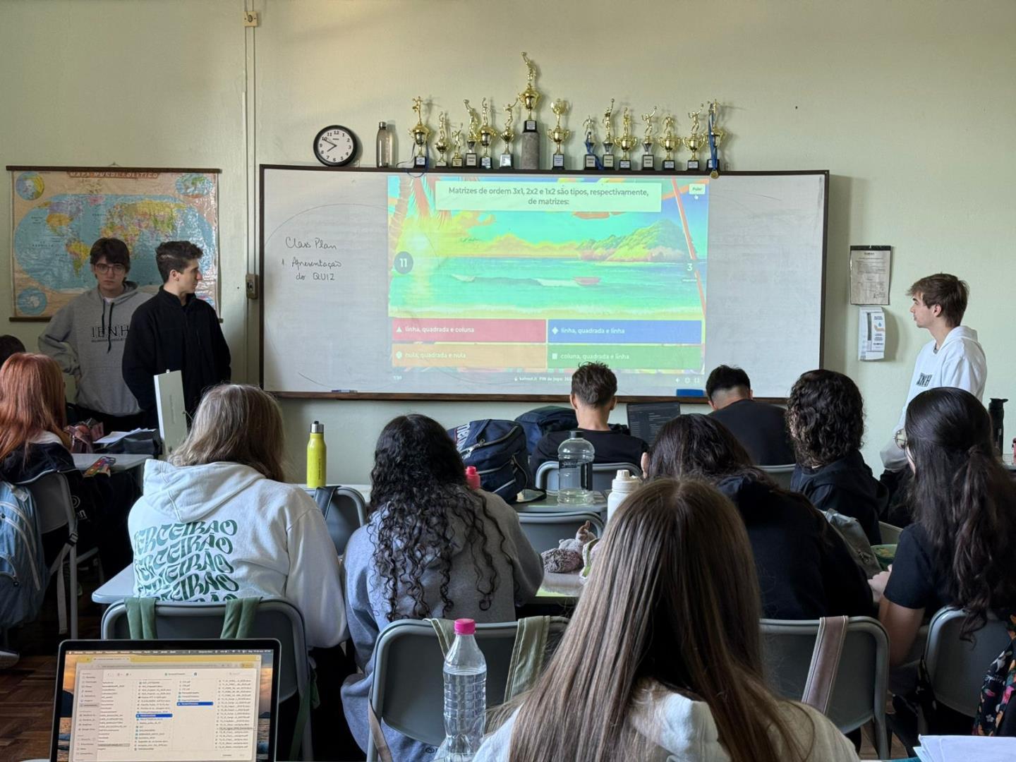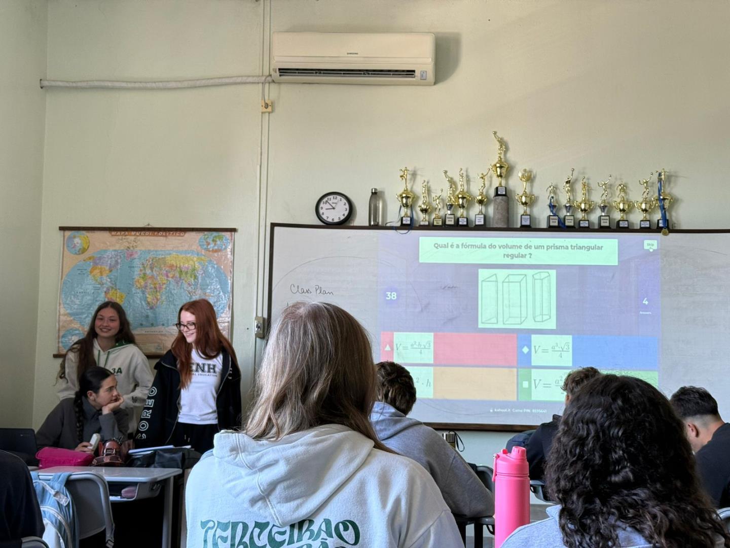 Além disso, utilizando ferramentas de Inteligência Artificial, a professora de Matemática Marjunia Klein elaborou uma apresentação no Google Apresentações com os conteúdos que mais têm sido abordados nas provas do ENEM nos últimos anos. O material foi discutido em sala de aula, auxiliando os estudantes a direcionar seus estudos.