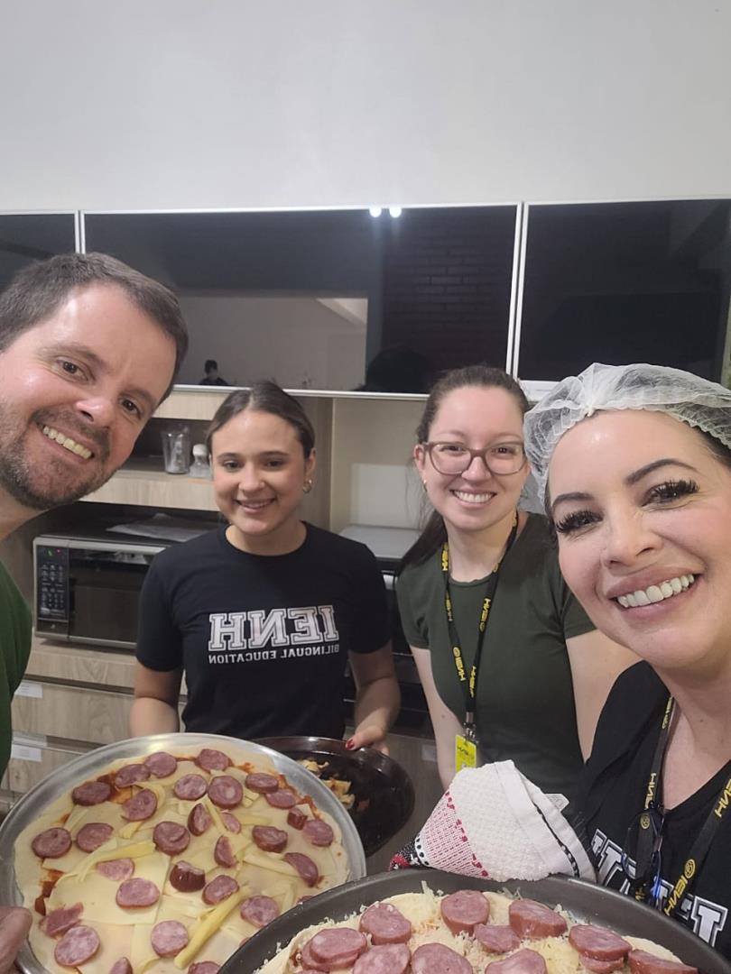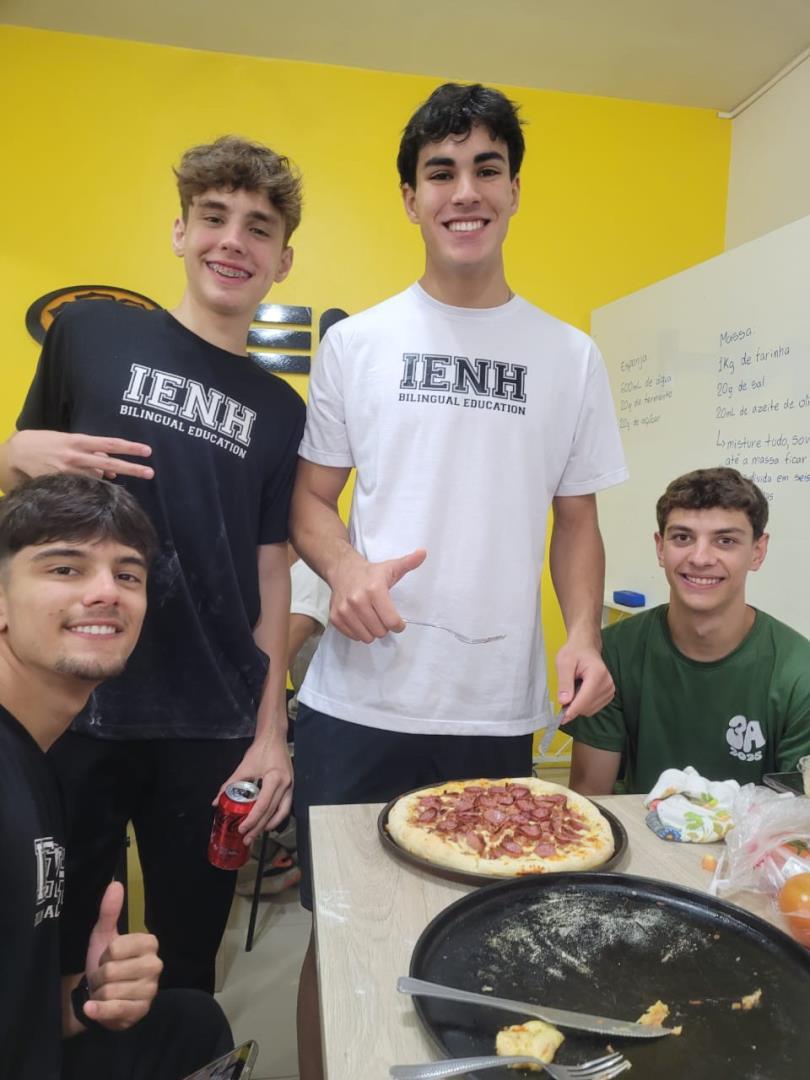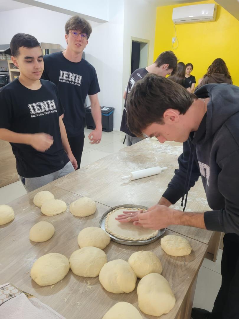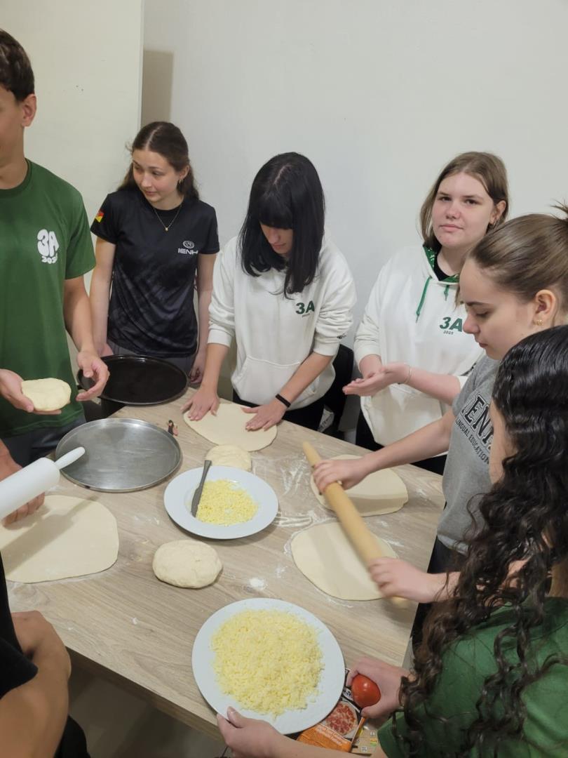 As turmas da 3rd grade do Ensino Médio da IENH – Unidade Fundação Evangélica tiveram um dia diferente e cheio de aprendizados. Conduzidos pela professora Joseana da Silva, os estudantes participaram, no dia 11 de novembro, de uma aula especial no Espaço Maker, onde puderam colocar em prática habilidades importantes para o futuro enquanto produziam pizzas de diversos sabores.