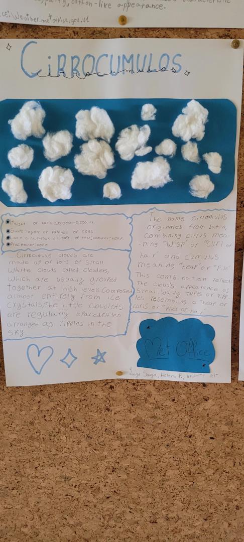 Como culminância do projeto, cada grupo produziu um pôster representando um tipo específico de nuvem, apresentando informações sobre sua formação, aparência e curiosidades. As apresentações em sala permitiram que todos compartilhassem suas descobertas e consolidassem o aprendizado de forma coletiva e dinâmica.