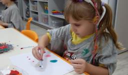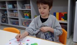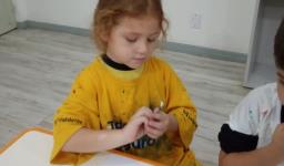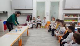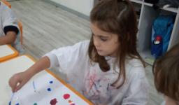 Inicialmente, a Professora – Andréia Steinmetz Dias da Silva apresentou as tintas de cores primárias (vermelho, azul e amarelo) às crianças. Após, elas puderam misturá-las e observar a transformação em outras cores, as secundárias.