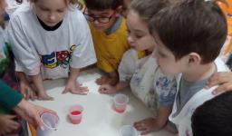 Uma aula divertida fez com que as crianças do Nível 4B da Educação Infantil Bilíngue da IENH – Unidade Oswaldo Cruz aprendessem sobre as cores. A partir de um experimento com tintas, realizado no início de novembro, a turma observou os tons primários e secundários.