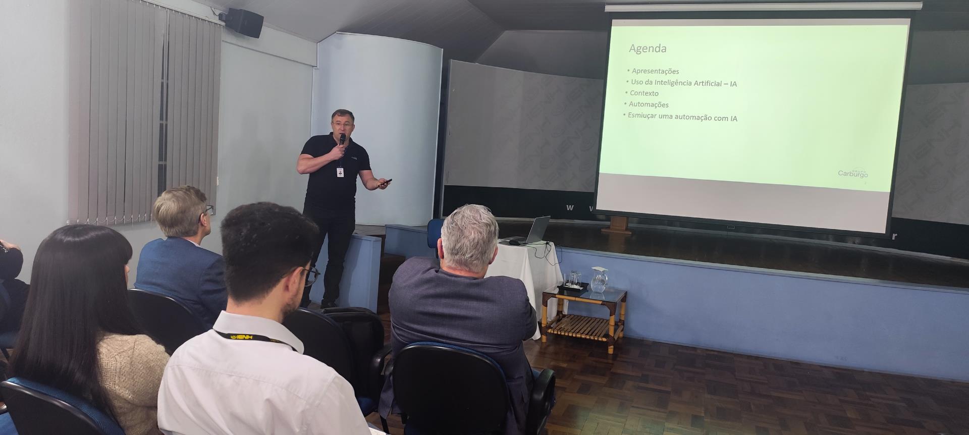 André Scheibe, Gerente de TI do Grupo Carburgo, que compartilhou experiências práticas sobre o uso de IA em processos internos e no relacionamento com clientes.