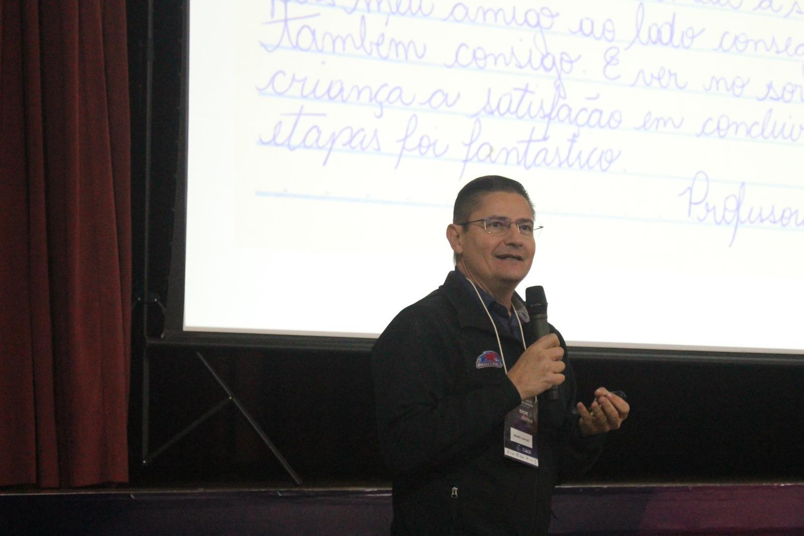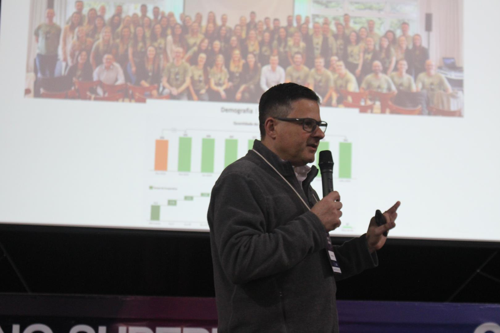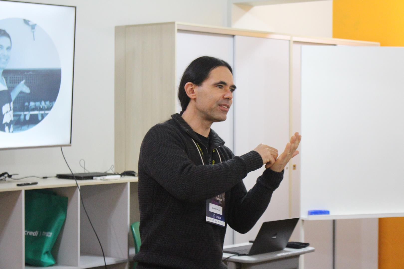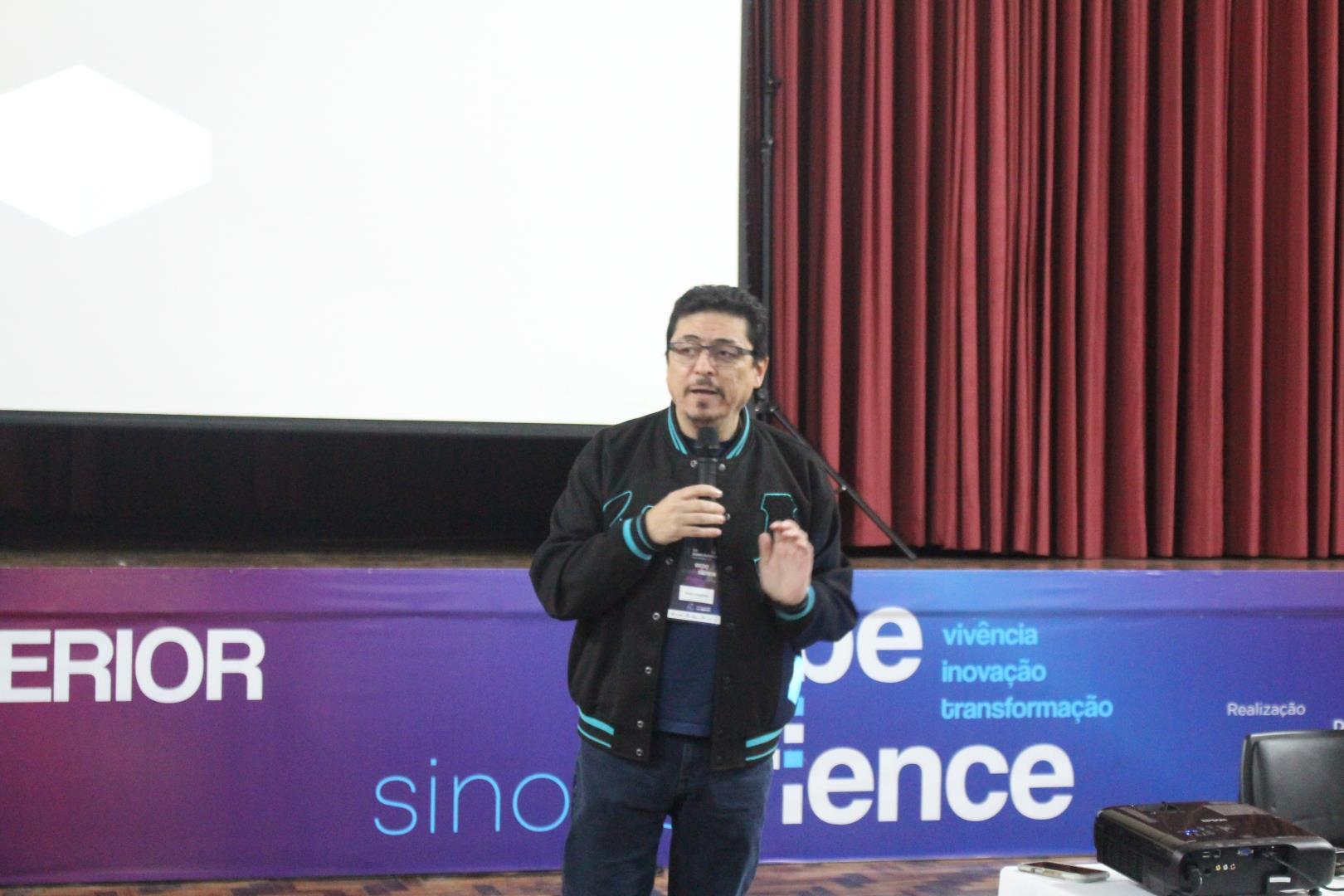 Conferência de Franz Figueroa (Apple Developer Academy – PUC-RS), que abordou “Professores como Designers de Experiências: competências para uma nova era”, destacando o papel essencial do docente na criação de aprendizagens significativas.