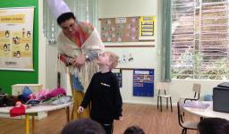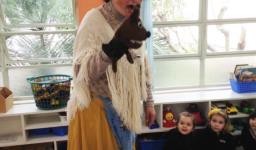 Durante o mês de agosto, a Professora Denise Serini Kuhsler veio fantasiada de Vovó Neném para visitar as turmas da Educação Infantil. Com muito diálogo, descontração, imaginação e auxílio de materiais ilustrativos, contou a seguinte história: