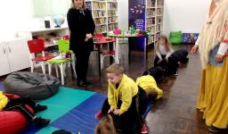 Ao final da história, cada turma vivenciou uma brincadeira folclórica: telefone sem fio, brincadeira com corda, pular cobrinha e jogo de mímica. Após o momento de muita interação e diversão, os alunos também degustaram as bolachinhas de coco da vovó da história.