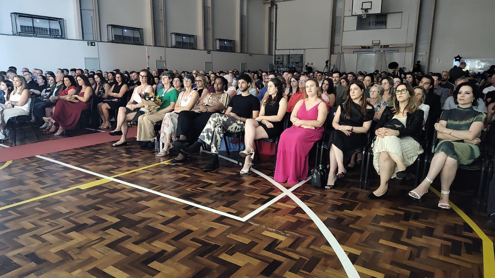 A cerimônia contou ainda com homenagens ao paraninfo e às professoras homenageadas, bem como um momento especial dedicado às famílias, reconhecendo o apoio e a presença constante ao longo da trajetória escolar dos formandos.