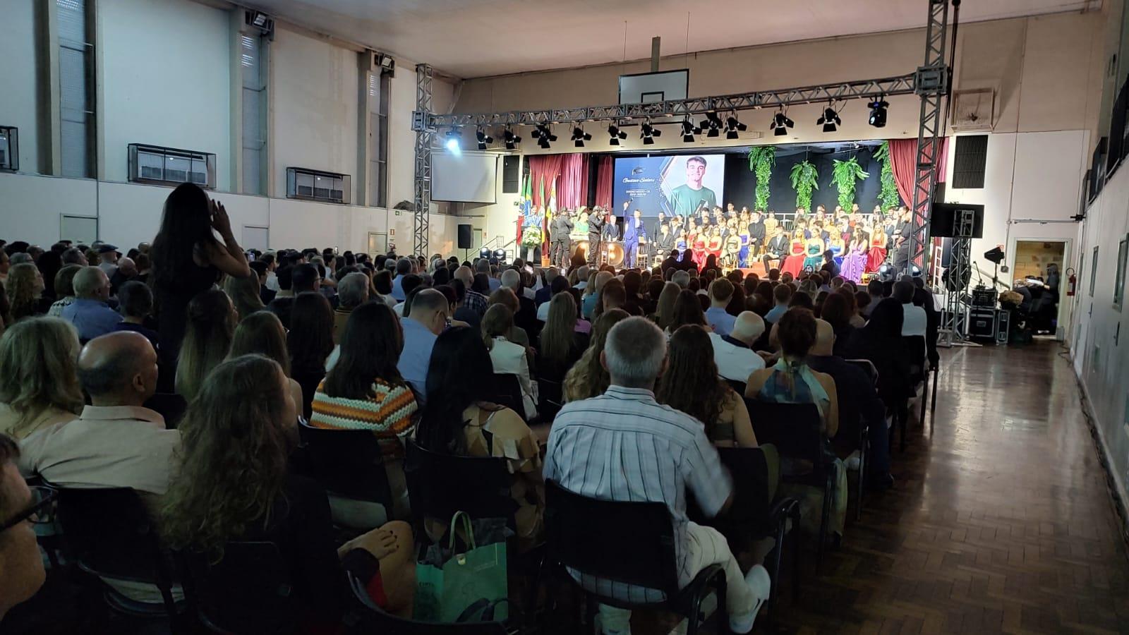 As falas das oradoras de turma emocionaram o público ao relembrar vivências, desafios e aprendizados construídos ao longo dos anos. Representando a turma 3A, Laura Luft Furtado destacou a força da amizade, o espírito de parceria e o papel fundamental das professoras e do paraninfo na formação pessoal e acadêmica dos estudantes. Já Sophia Dias Staub, oradora da turma 3B, trouxe reflexões profundas sobre crescimento, diversidade de personalidades e o valor dos “fragmentos” que constroem quem somos, além de prestar homenagens a profissionais que marcaram a caminhada da turma.