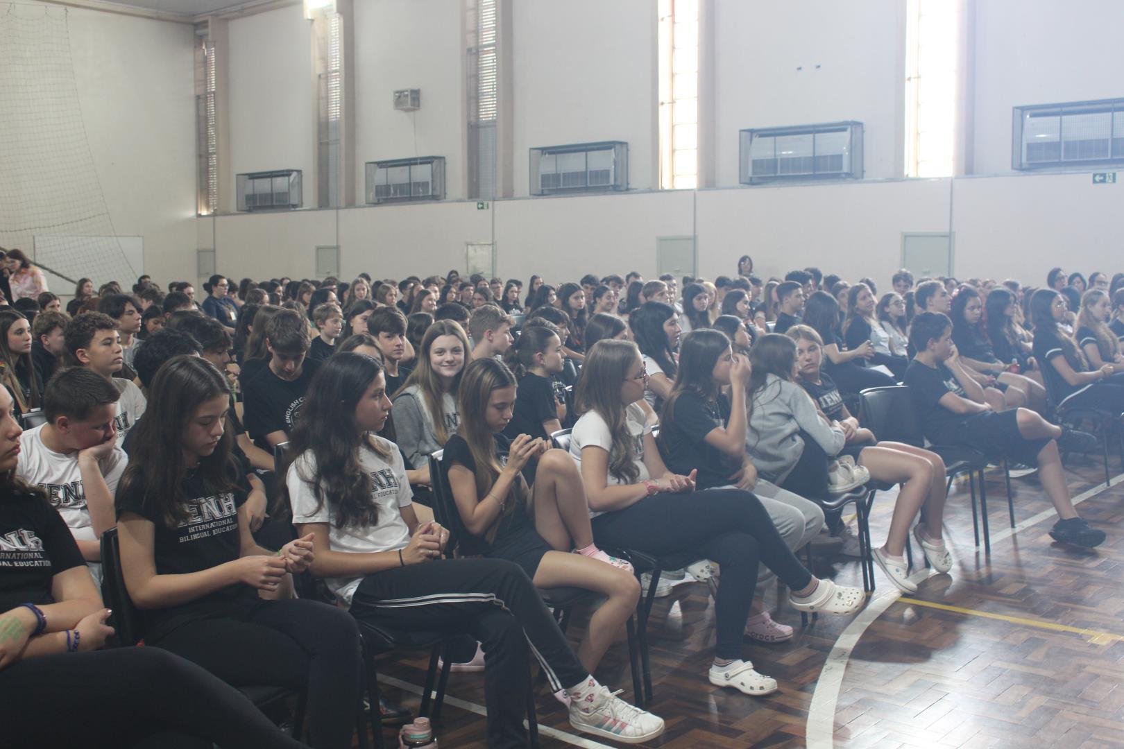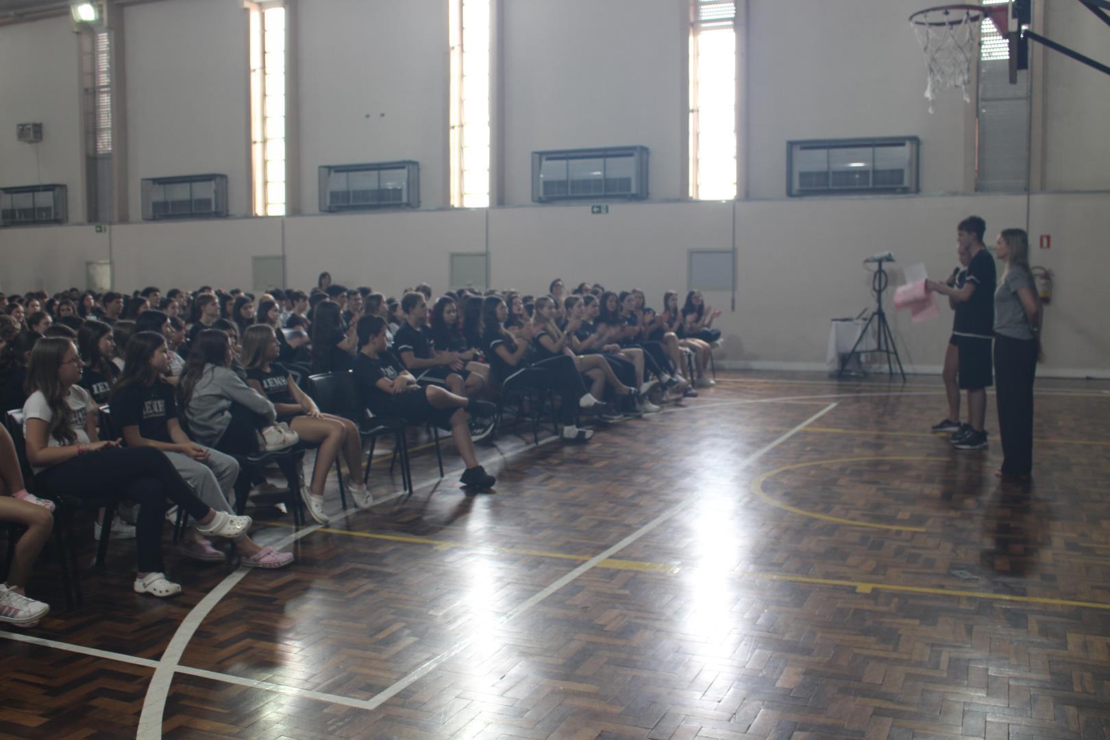 O encontro também marcou a despedida do GECA 2025, que recebeu certificados de participação. A condução do momento foi realizada pelo próprio GECA 2025, ao lado da coordenadora da Unidade, Daniele Blos, celebrando o trabalho desenvolvido ao longo do ano.