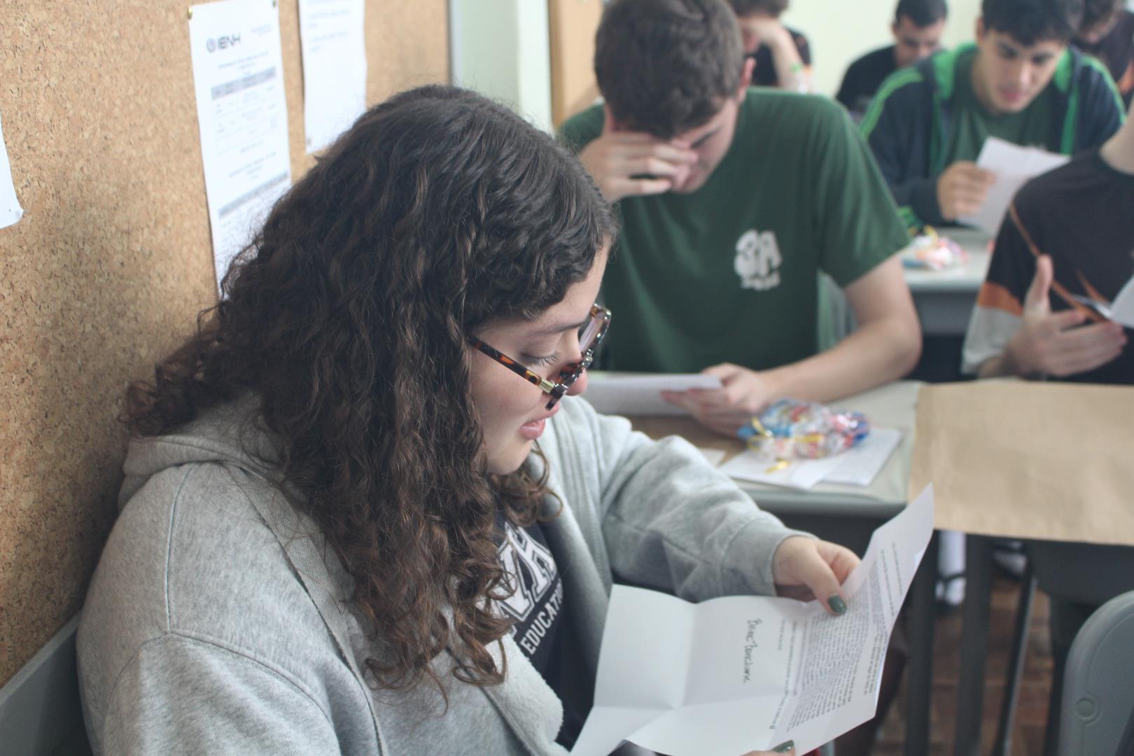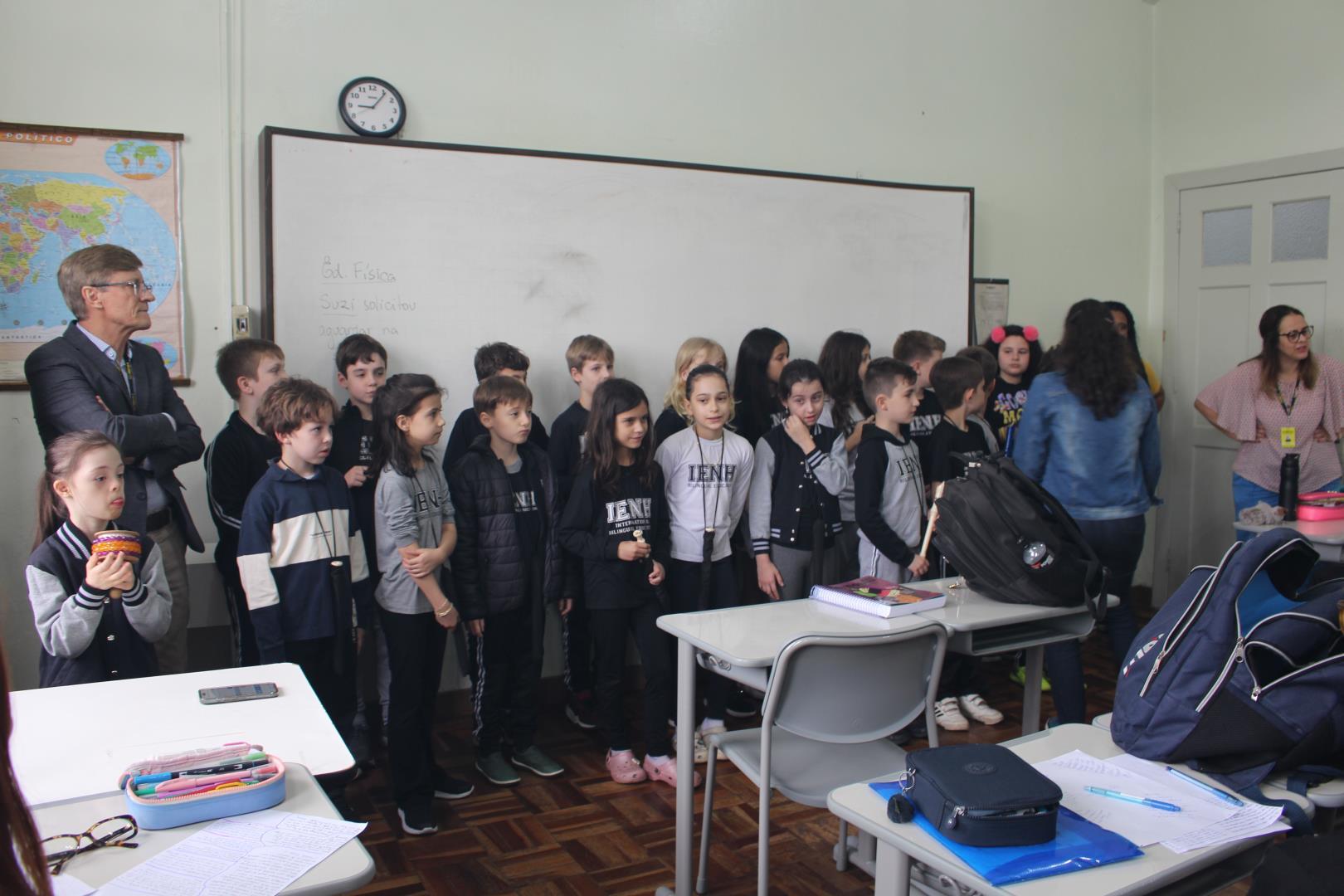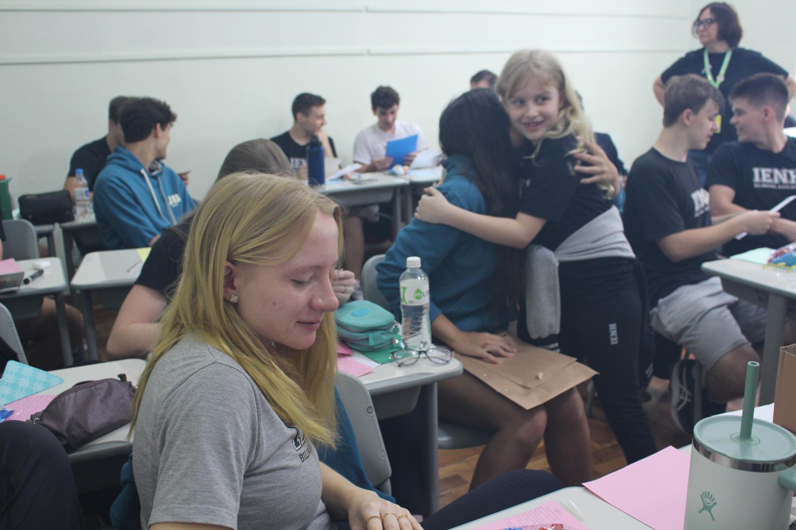 A poucos dias do encerramento das aulas, os estudantes das turmas de 3ª série do Ensino Médio da IENH – Unidade Fundação Evangélica receberam uma surpresa especial. Os estudantes do Year 3 do Ensino Fundamental do Currículo Internacional Bilíngue da IENH – Unidade Pindorama visitaram as salas para uma homenagem repleta de afeto e simbolismo, celebrando o encerramento de um ciclo importante na trajetória escolar dos formandos.