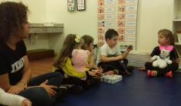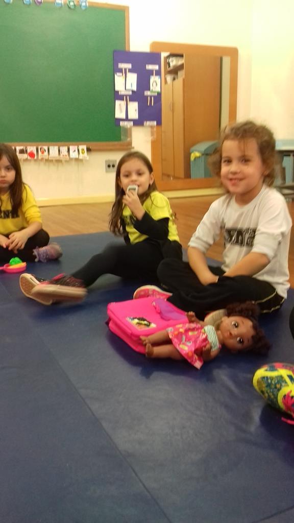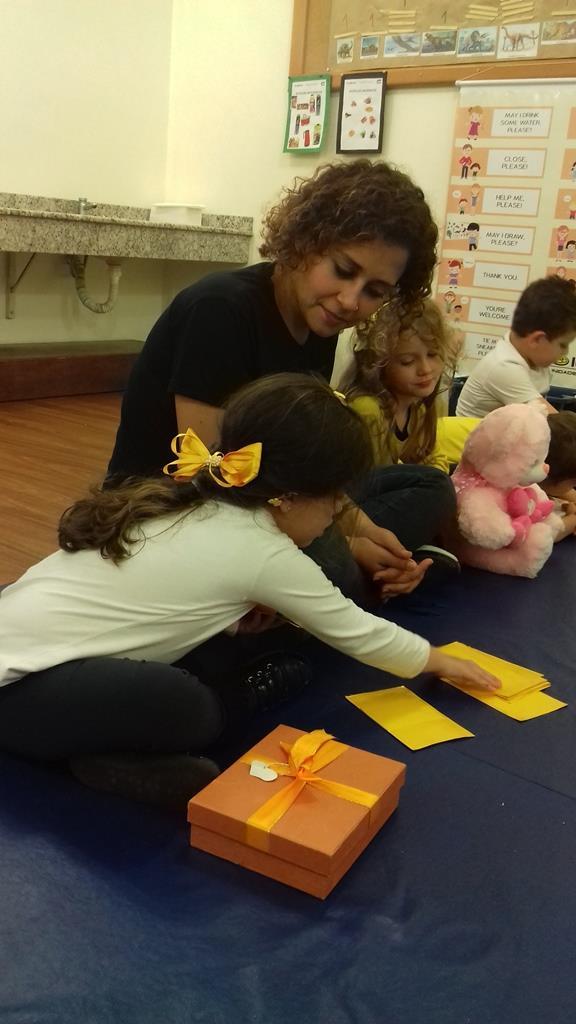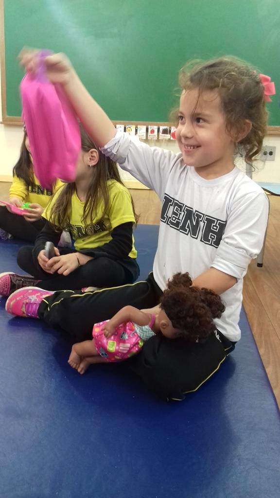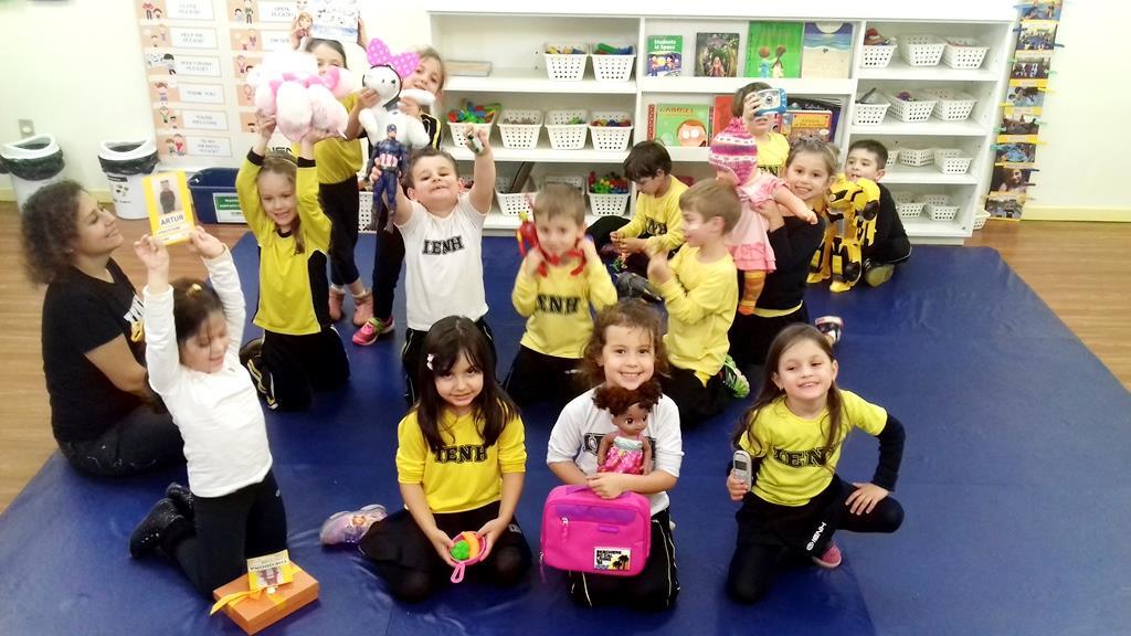 Integrando as atividades relacionadas à história, os alunos puderam escolher um brinquedo de casa para levar para a sala e apresentar aos demais colegas, dizendo seu nome em Inglês. “Eles ficaram bastante entusiasmados com a proposta de apresentar seus brinquedos favoritos para os colegas” comenta a professora Kelly. Também acompanhou o momento a Professora Luana Böes.